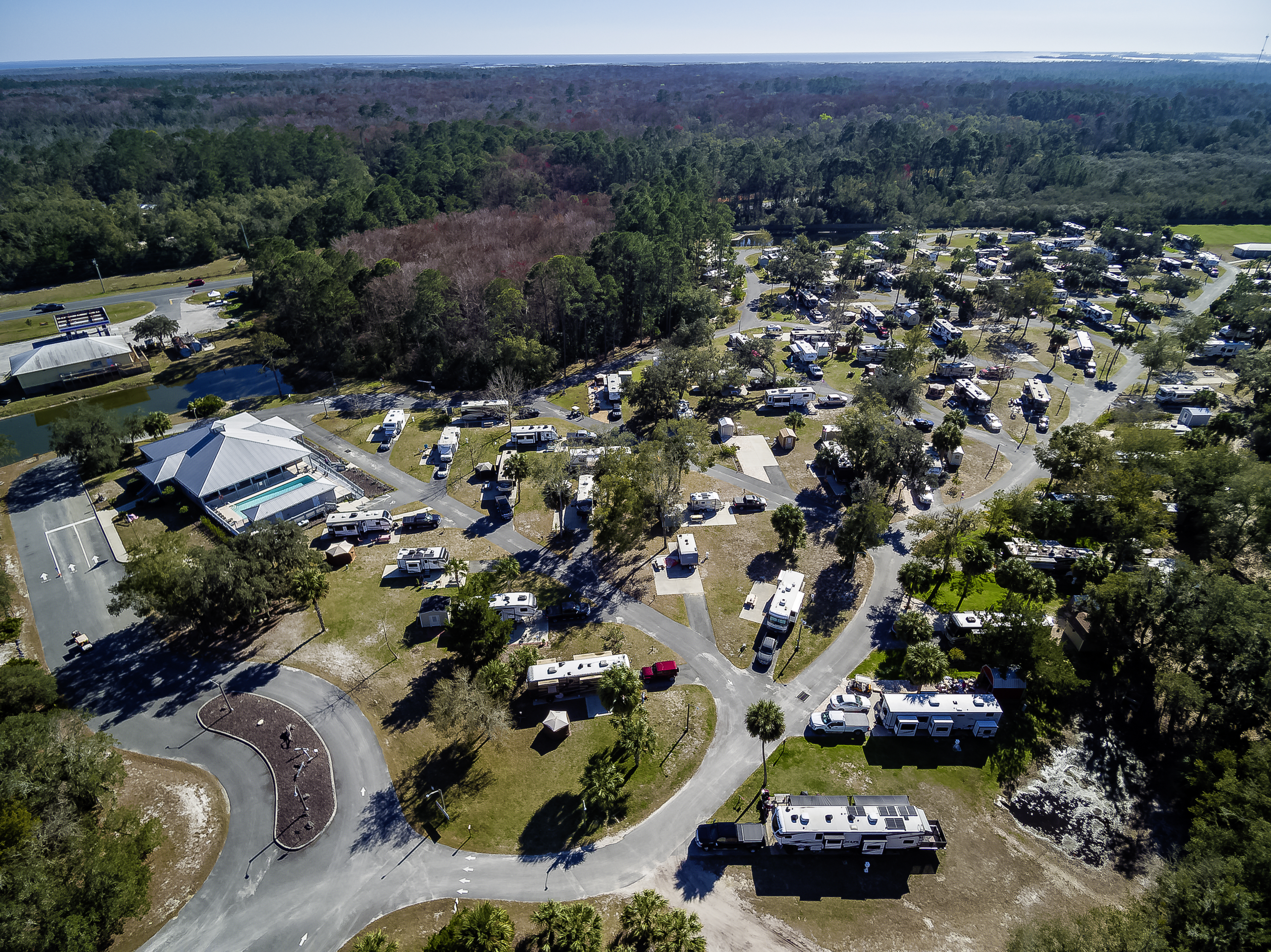 Nestled just minutes from historic Cedar Key, Florida, Cedar Key RV Resort offers the perfect blend of comfort, convenience, and coastal charm. Our spacious concrete pads average 45×80 feet or larger, providing plenty of room to relax and unwind. Guests enjoy premium amenities including a heated swimming pool, pristine bathhouses, paved roads, concrete patios, complimentary Wi-Fi, and full hookups with 30-50-amp service.
