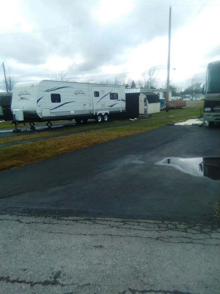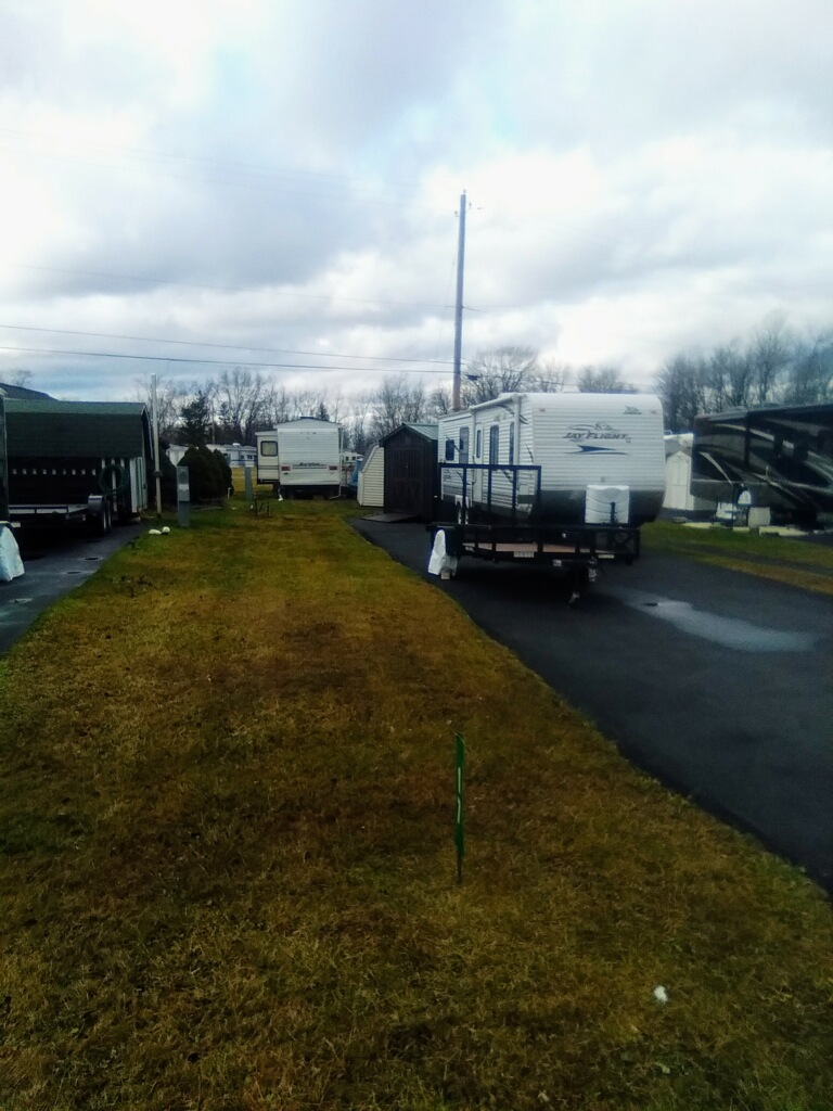 17 Sprucewood is on a 99 year lease in Leisurewood. The is approximately 35' x75', two-thirds is blacktopped. It includes an 8 x10 shed. It has 50/30 amp service, water and sewer which is included in the yearly Maintainence & Upkeep fee (2020 is $2410) for camping 7 months. All roads in park are blacktopped. The lot is close to one of the inground pools, bathhouse, beach fishing lake and adult activity building. There are daily activities and weekly dances. Golf courses are nearby. The Newstead Senior Center nearby is open to campground residents.