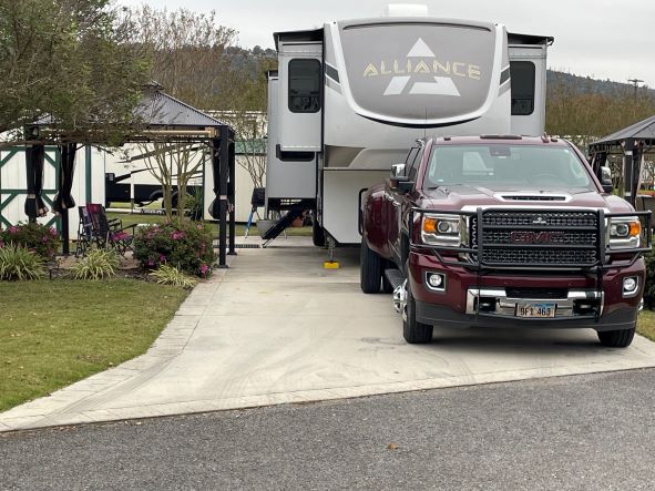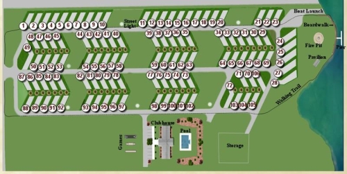 Beautiful landscaped lot near entrance. Pad extended for extra parking (not shown in pix) and paved path to 8x8 shed. 12x12 gazebo with sun/wind shades & overhead fan. Great fishing, close to shopping. Great for full-timing or weekend getaway.