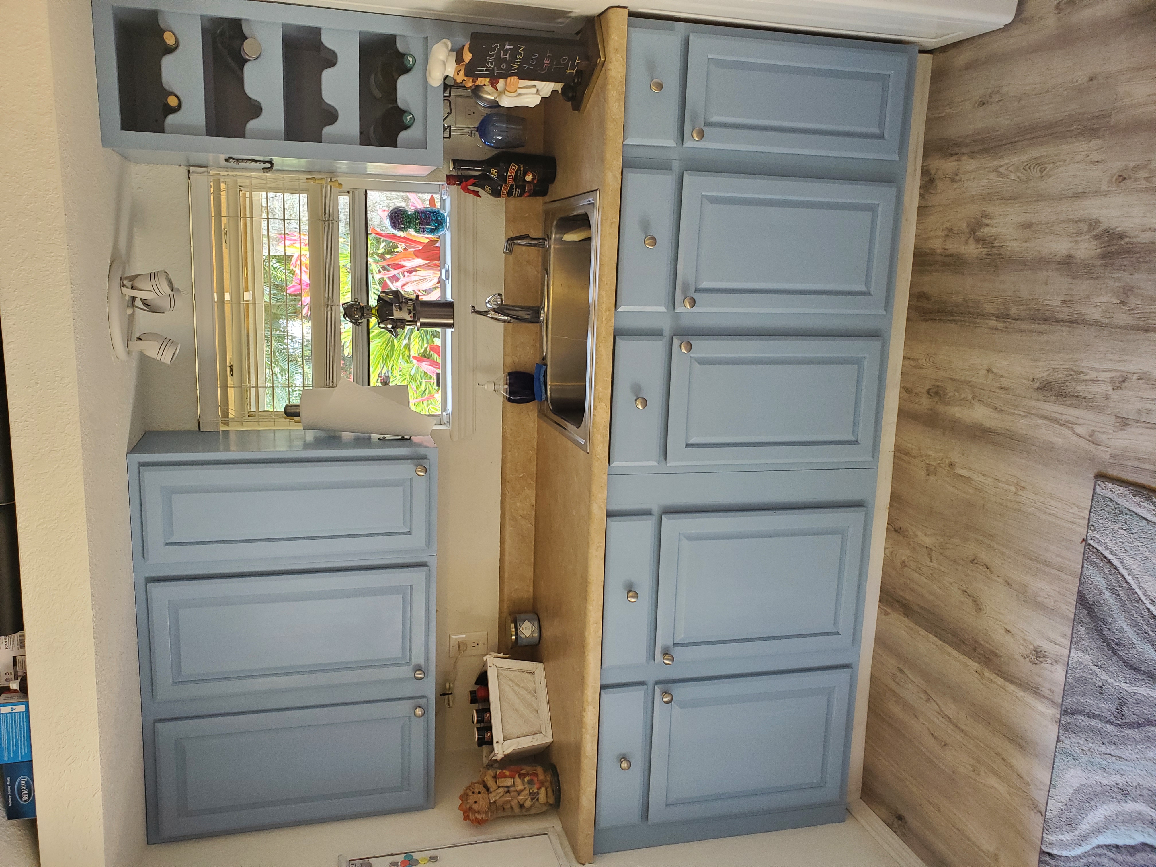 Finished coach house with full size refrigerator, washer, dryer and full bathroom with storage closet. More storage above kitchen area.