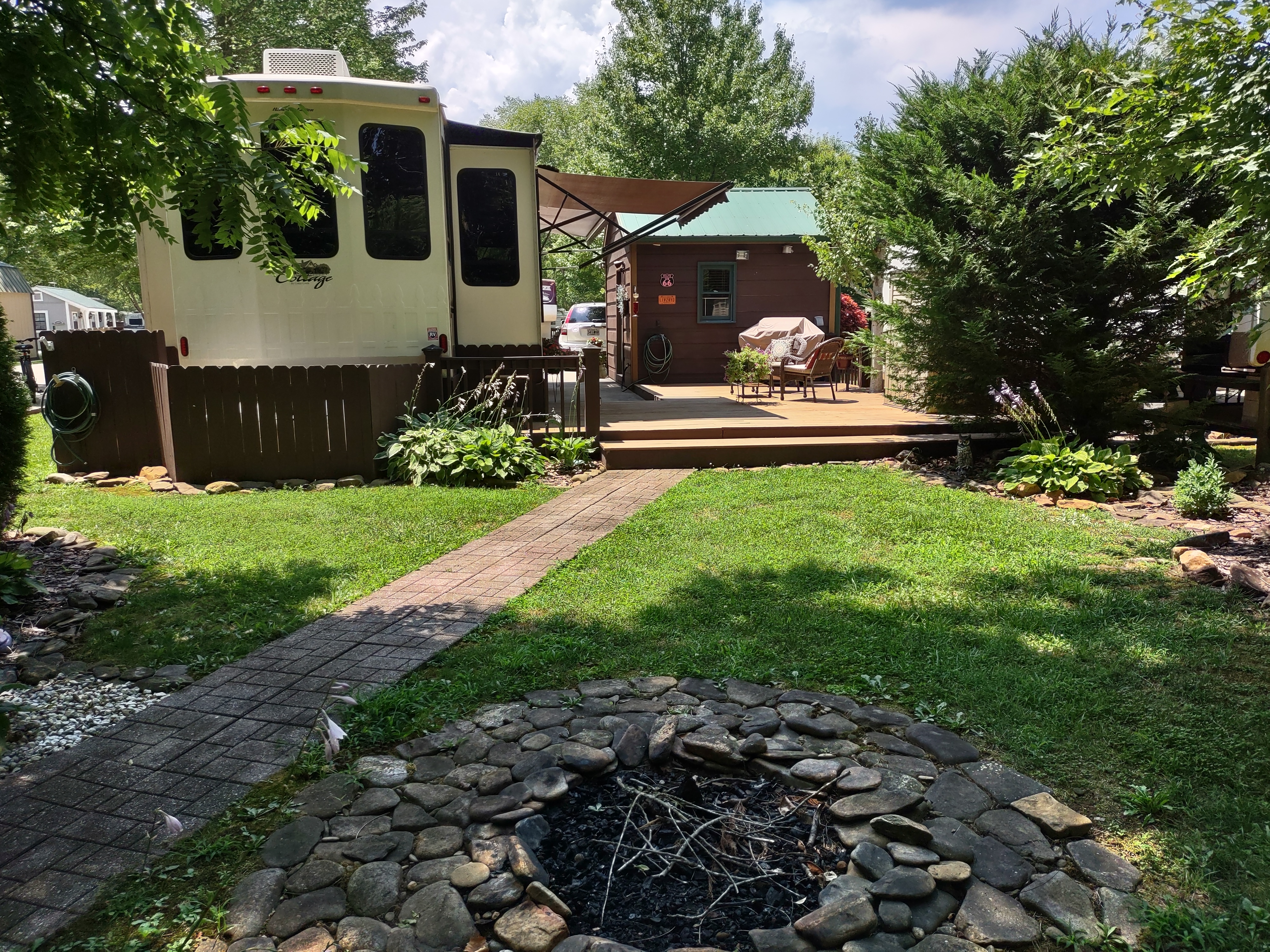 This lot and RV are set up to live full-time in. We lived 7 years full time here. No, the river never floods into our lot and we've had some really big storms. We love sitting on our deck by the water entertaining friends. RV is a Cedar Creek Cottage 2015. Please see more info on Zillow.com