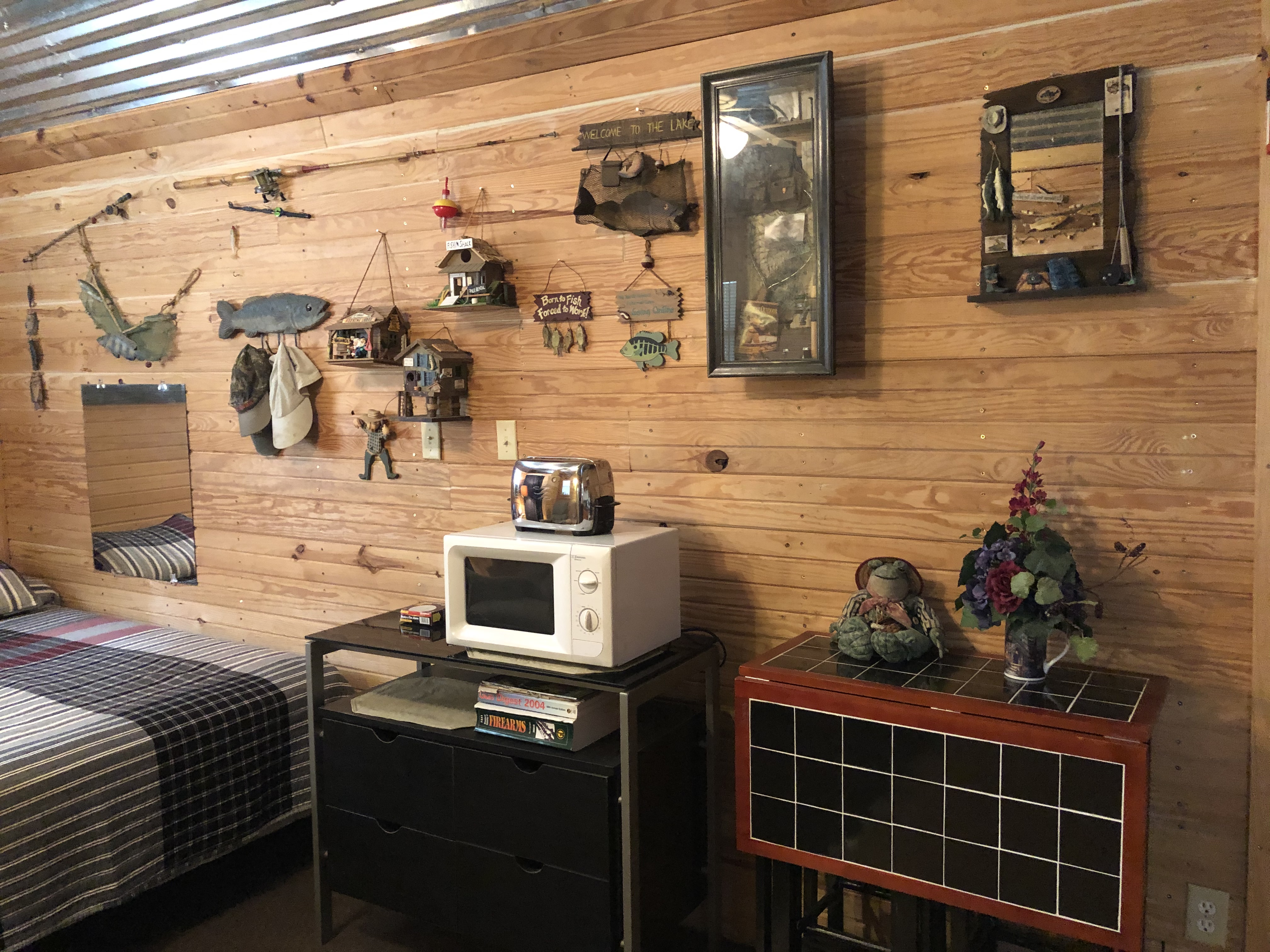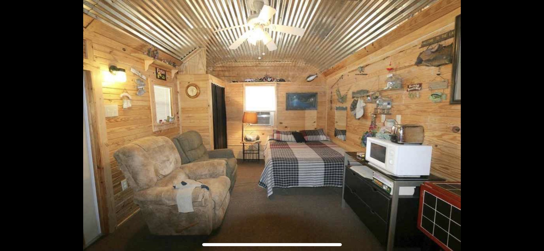 Nice quite, RV covered site/1 Rm Cabin/Lockable Boat Storage. Located on Texas side, south end (6 mile creek) of Toledo Bend Lake. Private boat ramp 5 min from camp or drive 30 minutes to launch on Lake Sam Rayburn. RV cover is 14’ wide x 65’ long x 14’ tall, with 50/30 amp/sewer/water. Camp comes completely furnished. Cable, WI FI, Internet, TV, AC, Stove, Fridge, 1 Bed/Bath, Community Water.