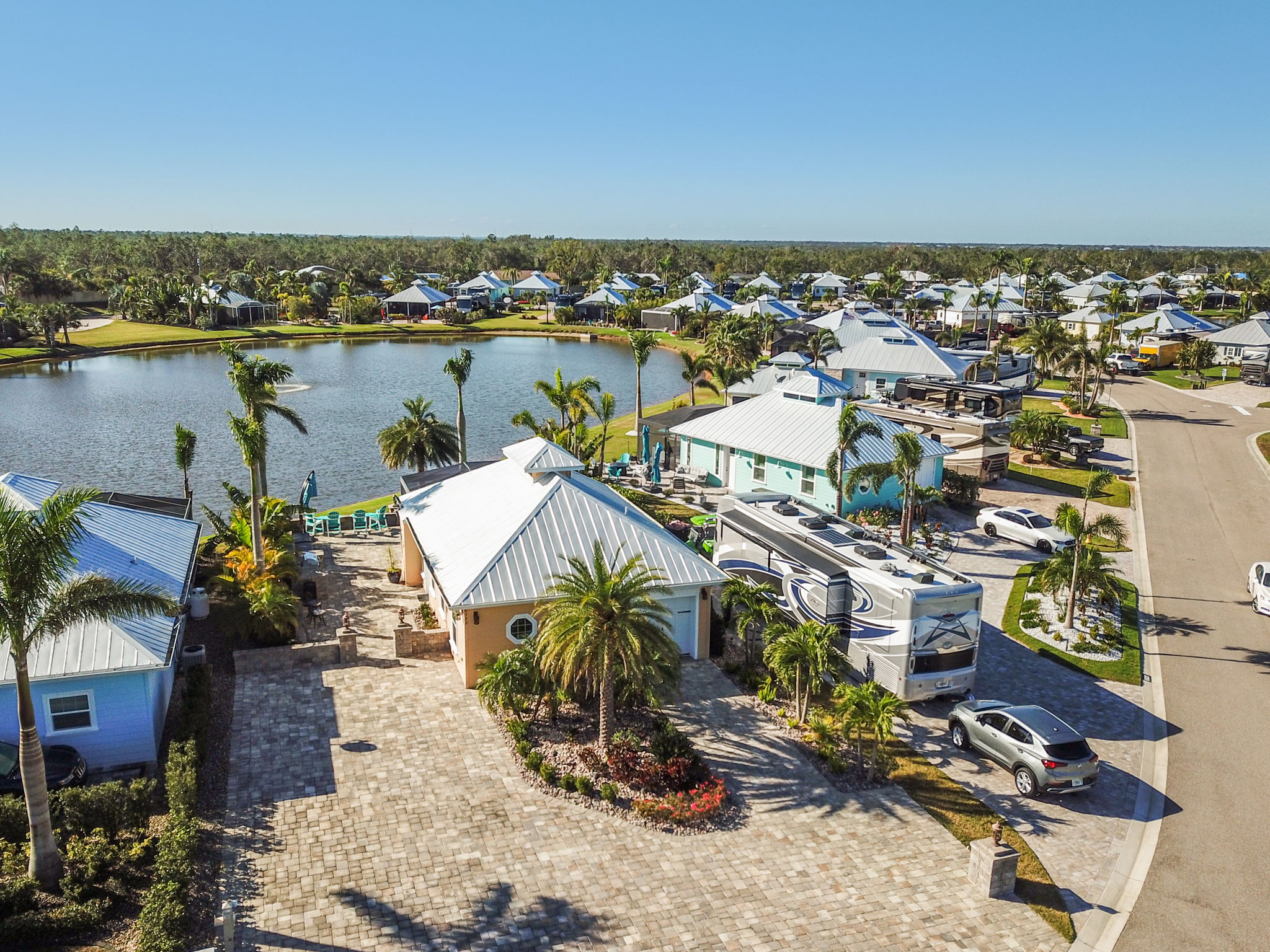Take your Motorcoach Travels to a whole new level! Located in the Thornton Creek Motorcoach Resort, This better than new "Casita" home is SPECTACULAR! The view, the decor, the landscaping, the community and on and on... This home is amazing and will take your breath away! A MUST SEE if you are looking for a place to call home when you are off the road. TCMR is a like minded community of Motorcoach travelers just like you! You feel right at home no only in the this awesome home, but also among your fellow adventurers. The special features of the casita are too numerous to list them all but here are just a few of the highlights (full list available): cinder block construction and hurricane glass and screens, huge, gorgeous fans, custom lighting inside and out, custom kitchen with beautiful granite, climate controlled garage, huge screened lanai with a salt water hot tub, full RV hook up pedestal with a long paver on concrete driveway, custom BULL BBQ area, high-end fire pit, $1000s in mature landscaping. Uplighting LED lights in the living room and family room (blue and purple as shown in the pictures) change colors and be plain lights as well. Don't wait. Get your own piece of paradise now!