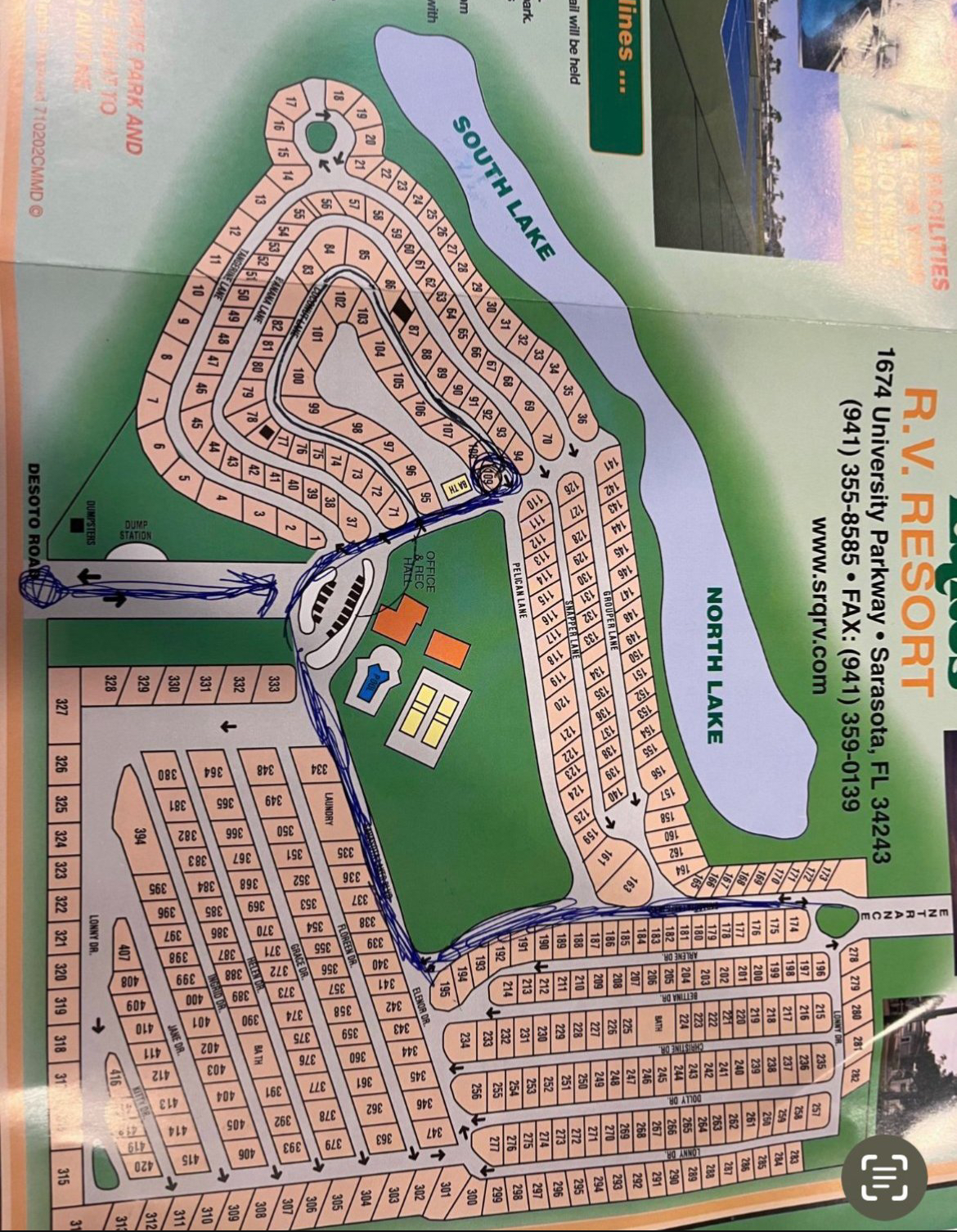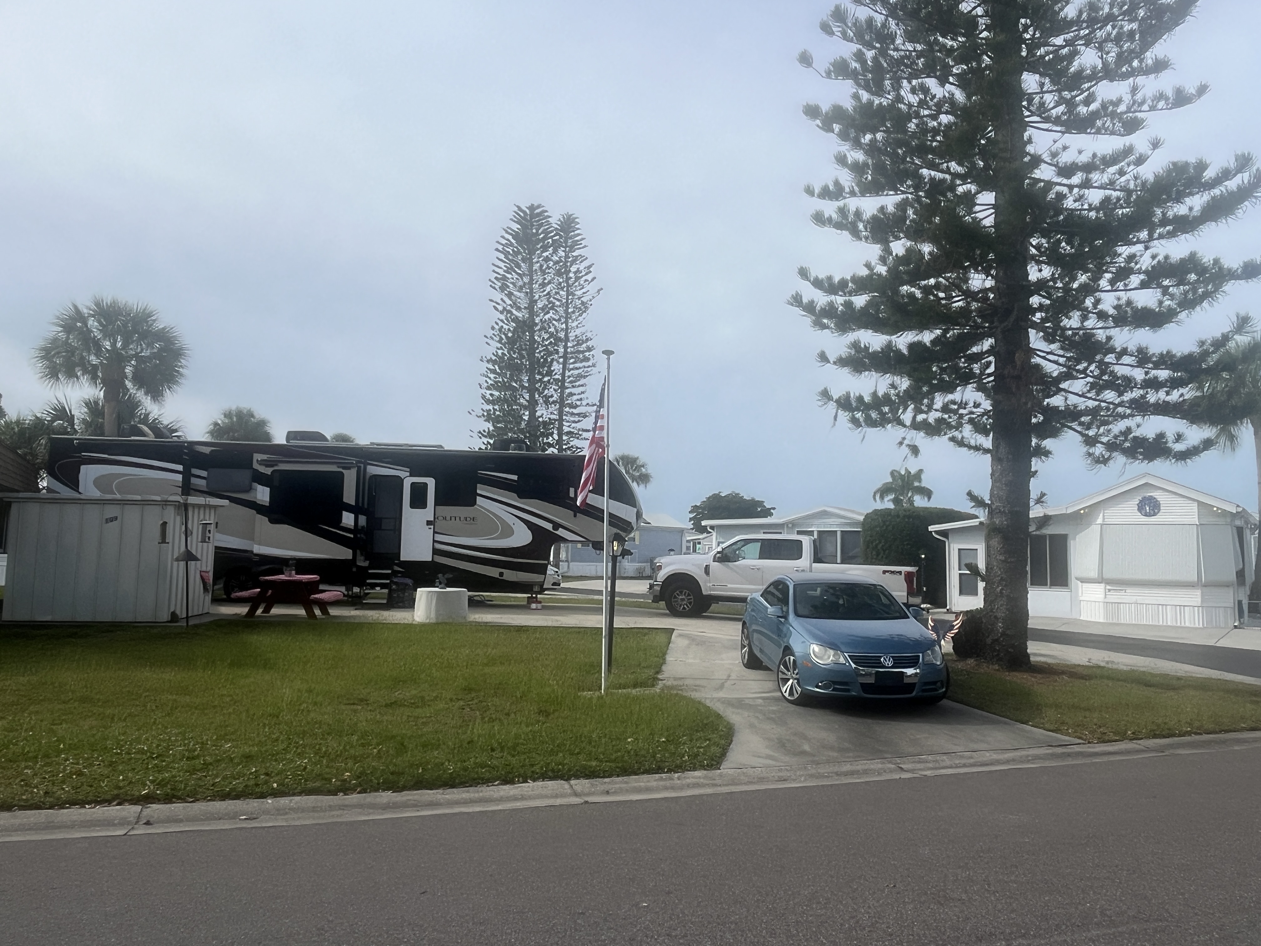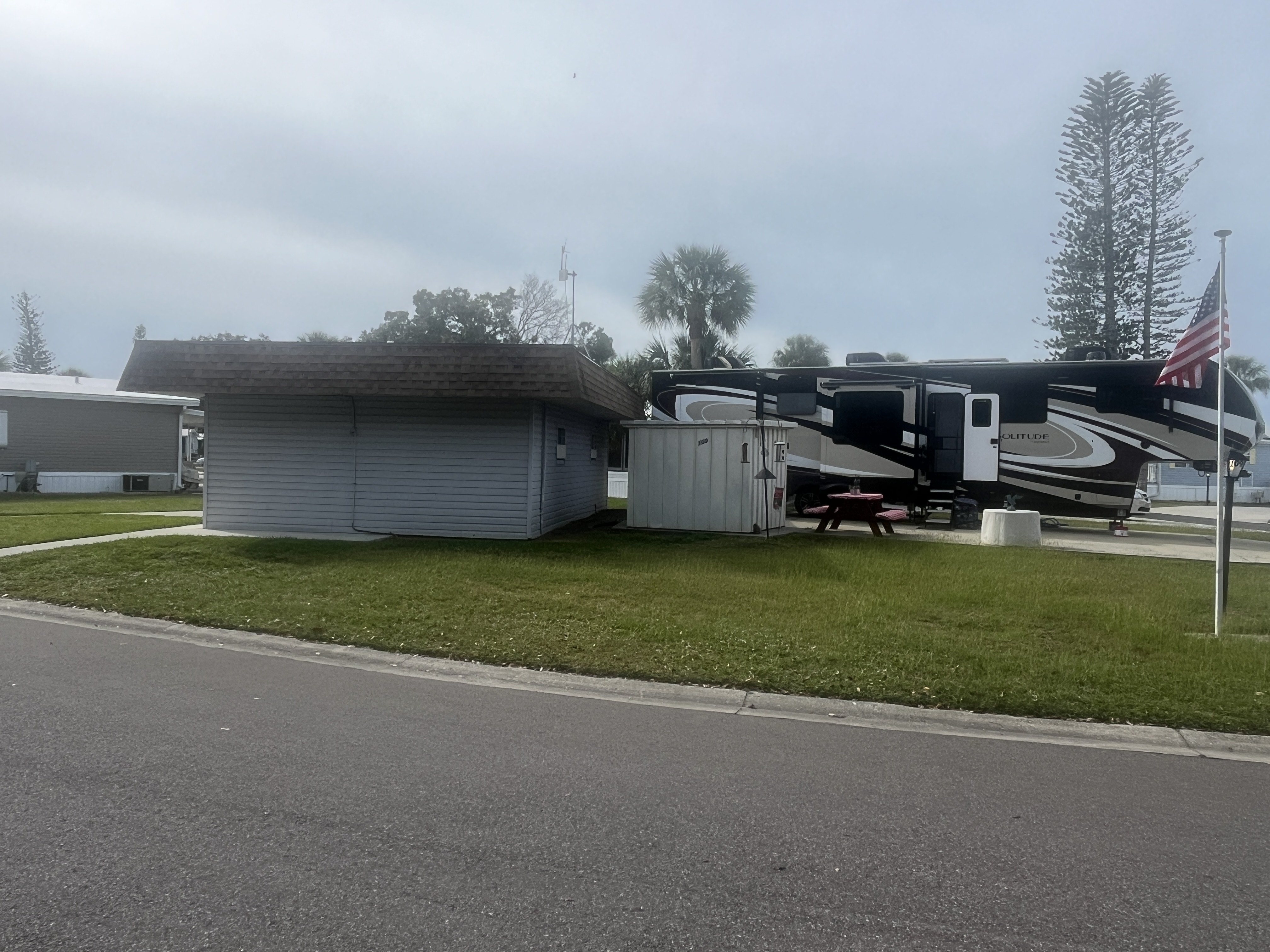 This oversized lot in the Sarasota Lakes RV Resort is a smart investment in a prime Florida location. The lot's ideal position is just a short walk from the clubhouse, heated pool, and laundry facilities, making it highly attractive to potential renters. The lot itself can accommodate an RV over 40 feet and provides ample parking space. With a low monthly HOA fee of $280 covering property taxes, internet, and utilities, your overhead is minimal. Enjoy the stability of a 443-unit gated co-op community with a staffed office, and a wide array of resort-style features.