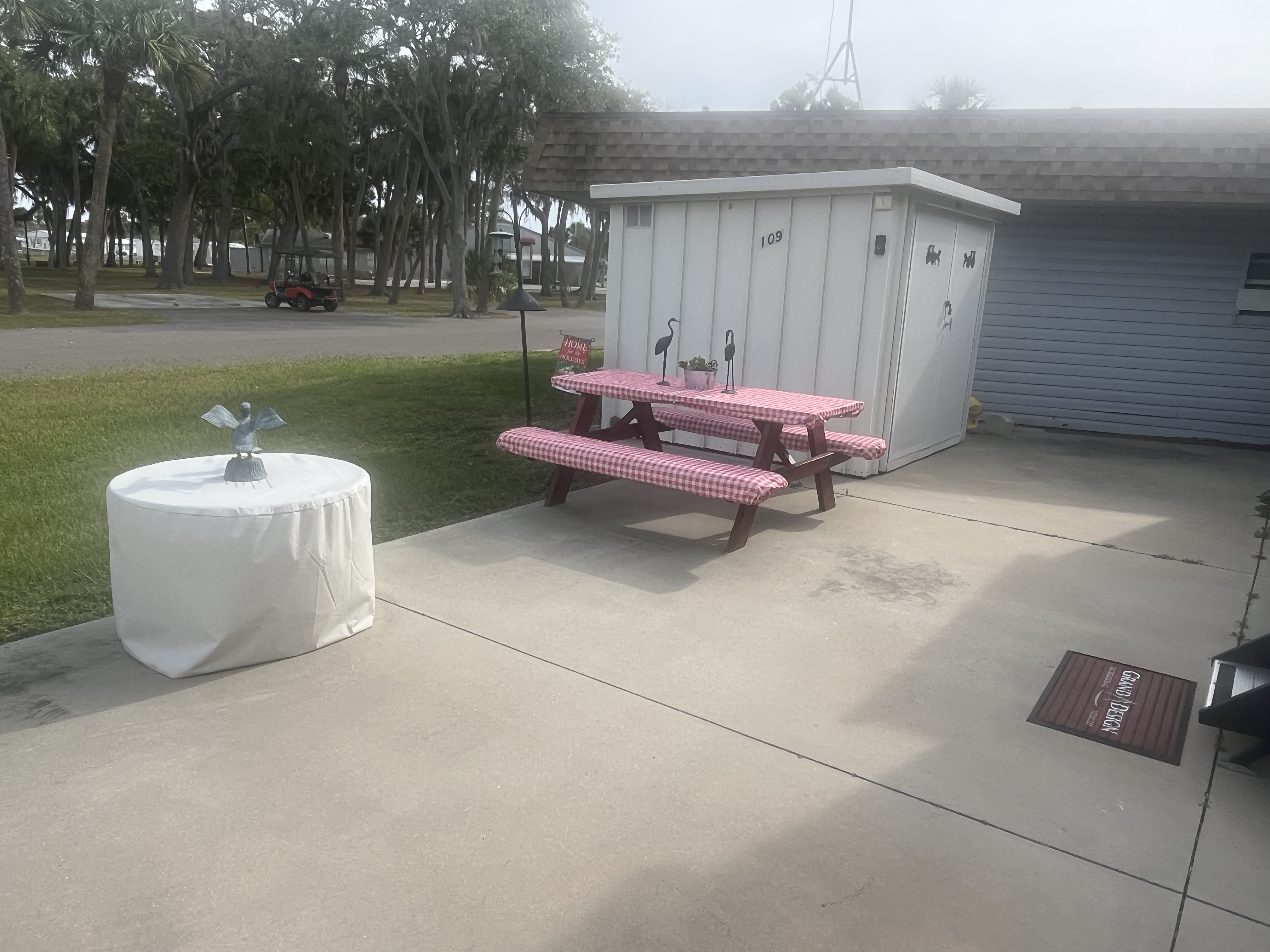 Lot Features: Oversized lot, fits RV over 40', extra parking pad, includes a shed and picnic table.
