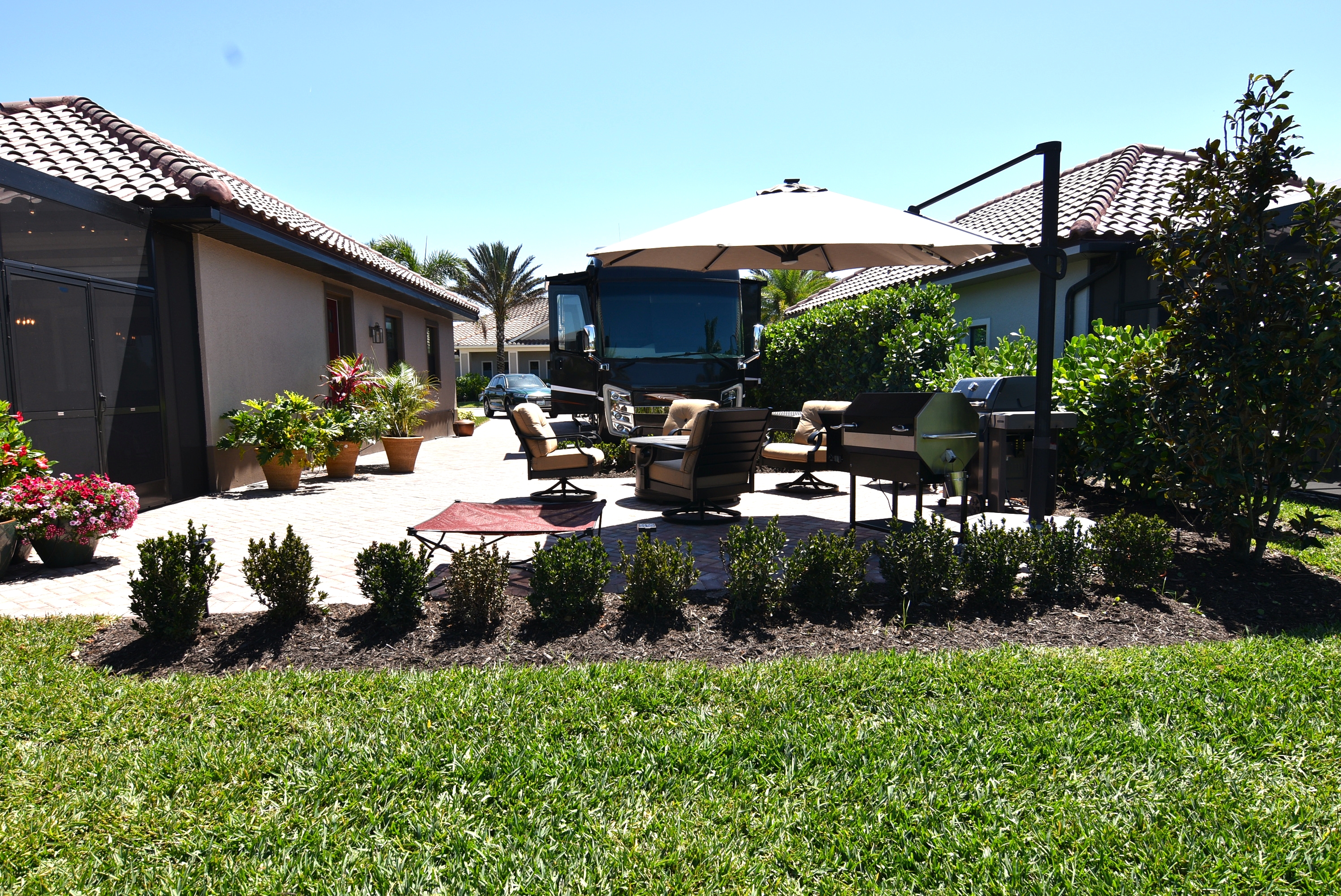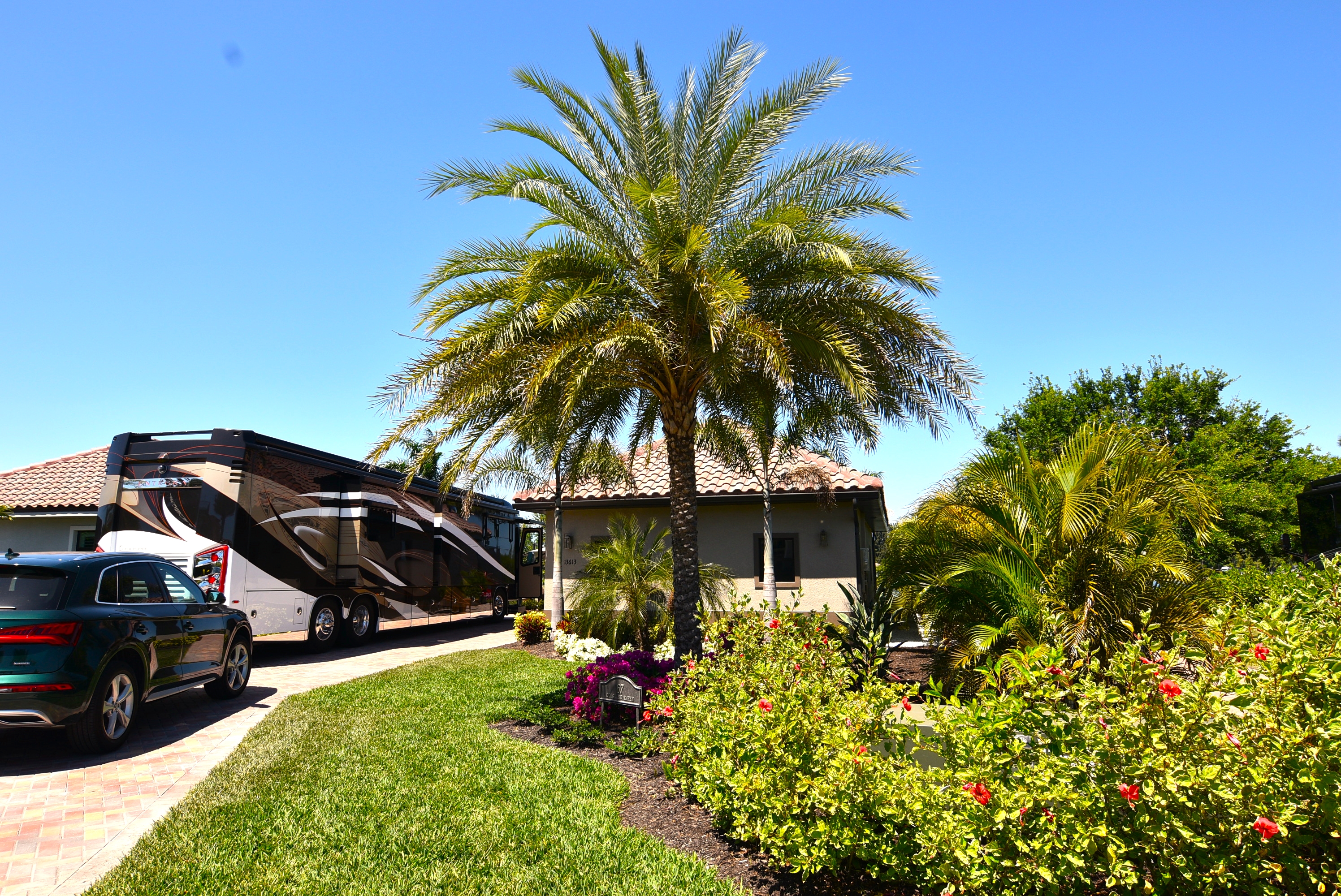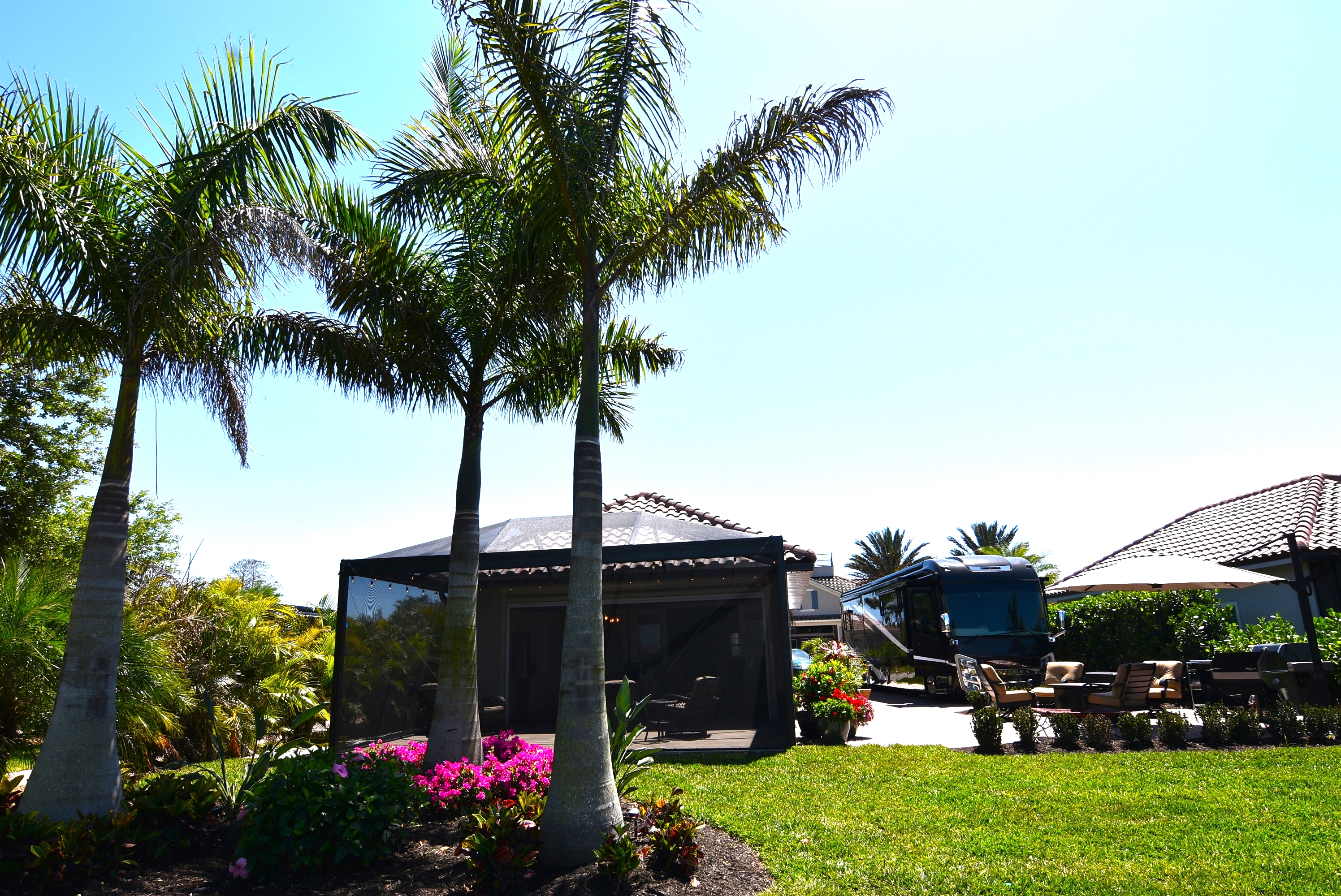 LOCATED IN Golden Palms Luxury Motorcoach Resort, the owners of this spacious RV lot are across the street from and have unlimited access to the huge saltwater pool and spa, gym, sauna, laundry, lake for fishing and boating, clubhouse with indoor and outdoor catering kitchens (including free ice), pickleball courts, walking trails, two huge dog parks and much more! This lot features an enlarged paver pad for your Class A or Super C motorcoach. The property has an 840 sq ft casita with a retractable wall to the screened lanai. The casita comes fully furnished with an additional seating area including a gas firepit, grill, smoker and umbrella. With an extensively upgraded landscaping package, .this site has been kept in incredible shape and is a must-see! This is a fantastic place to relax for a season or to have as a year-round home base. Golden Palms Luxury Motorcoach resort is the premier resort for Class A and Super C motorcoaches. The park is within 30 minutes of shopping, golf, beaches and everything that Southwest Florida has to offer! Own your piece of paradise!