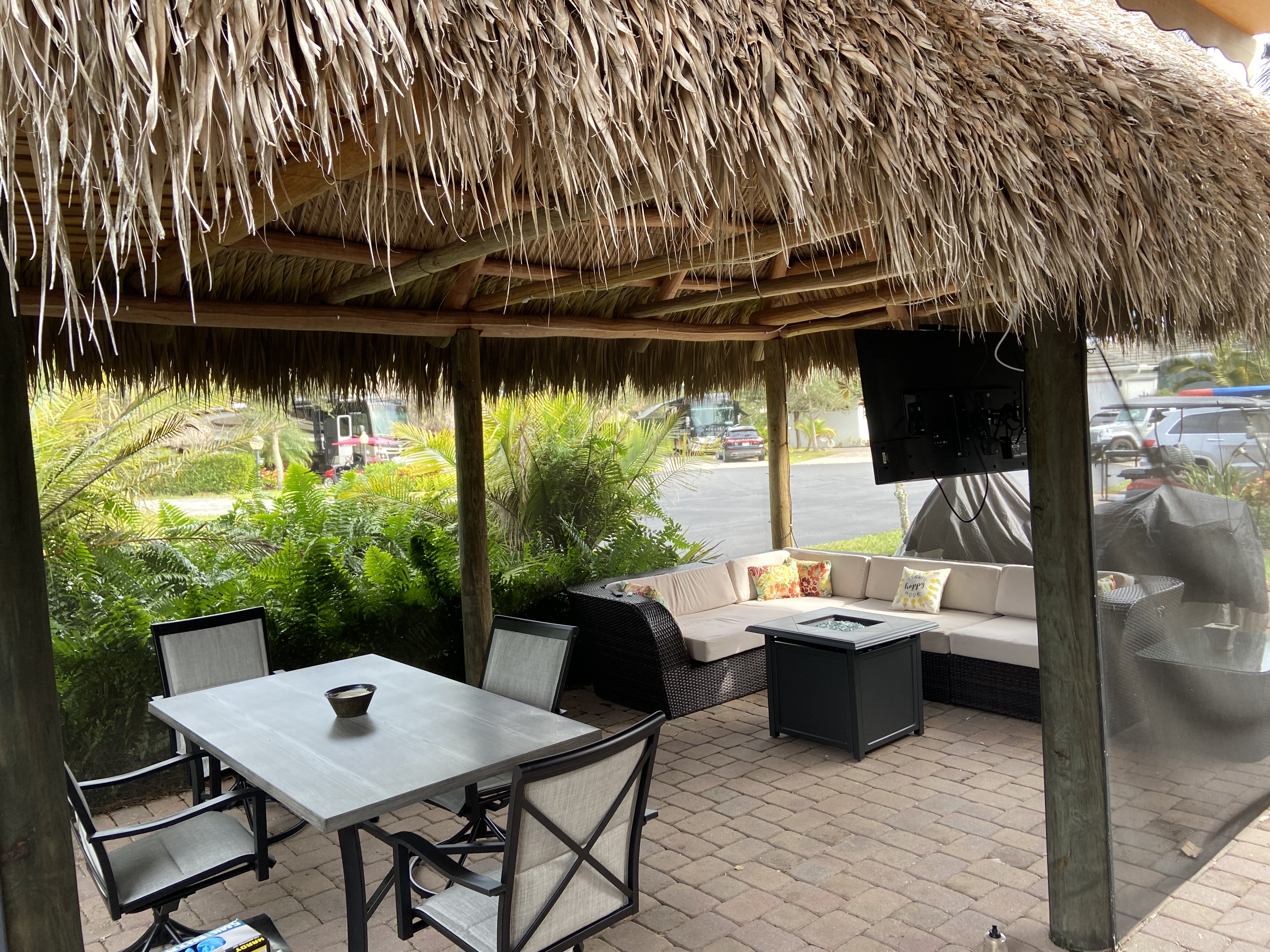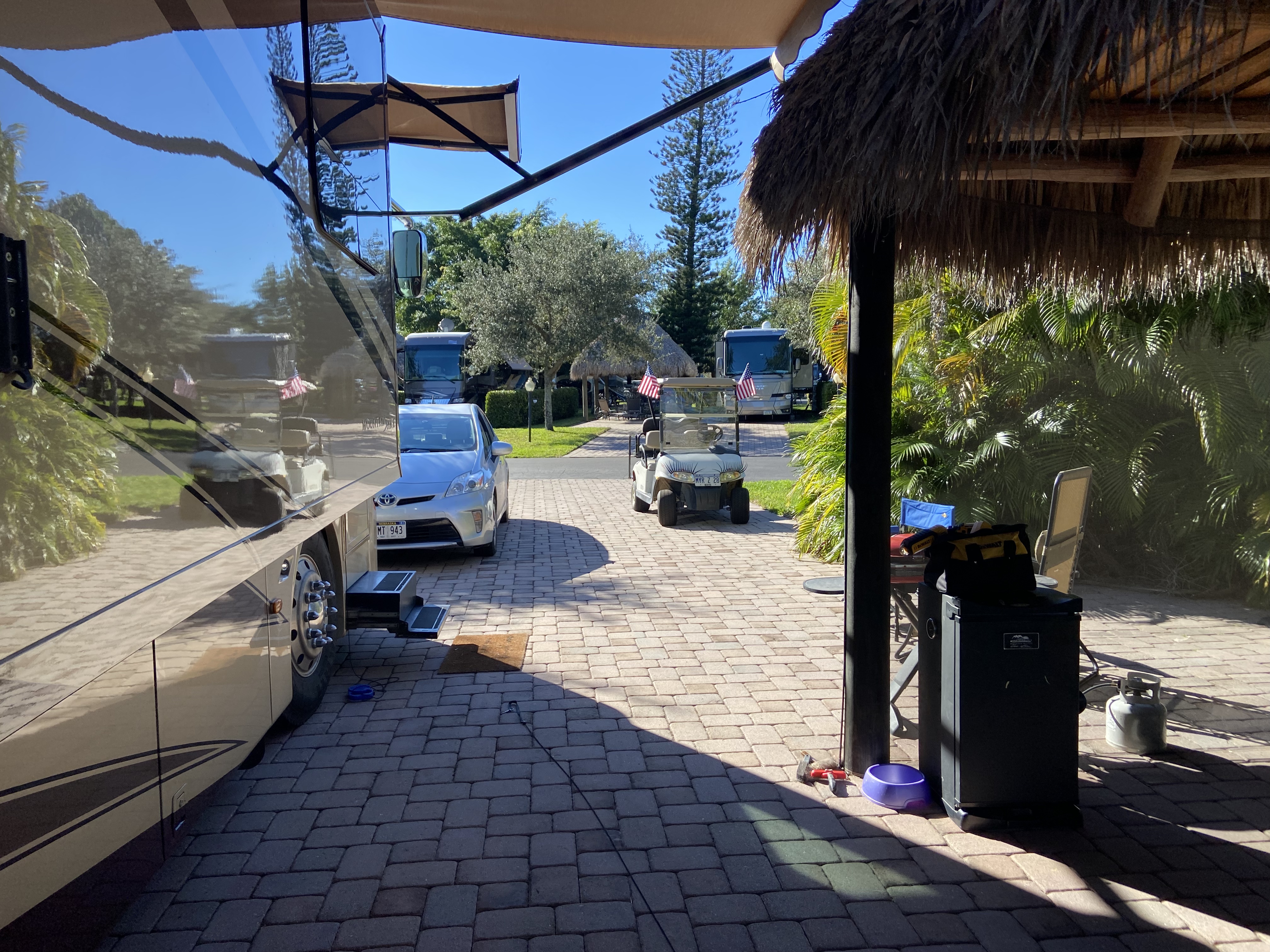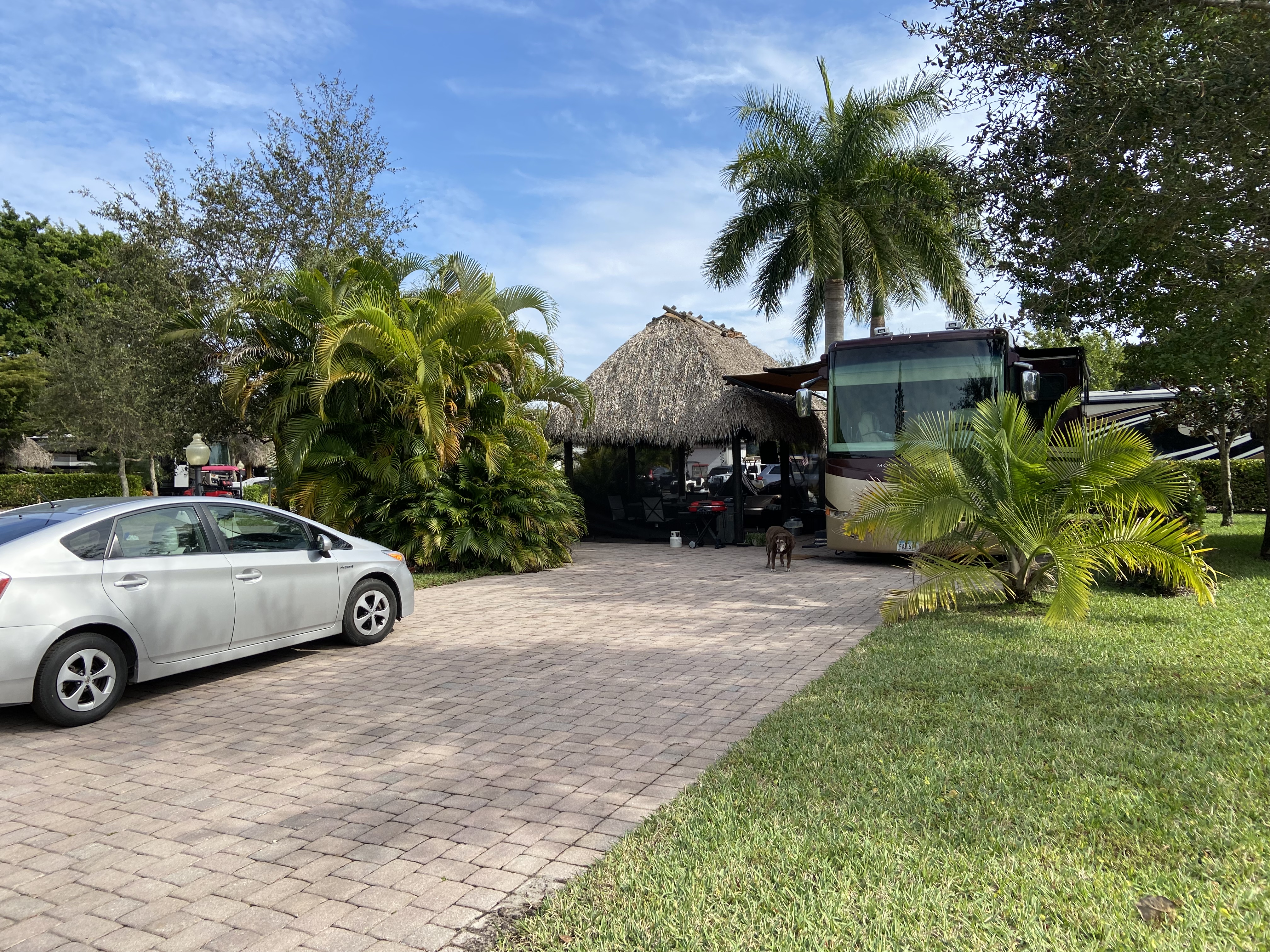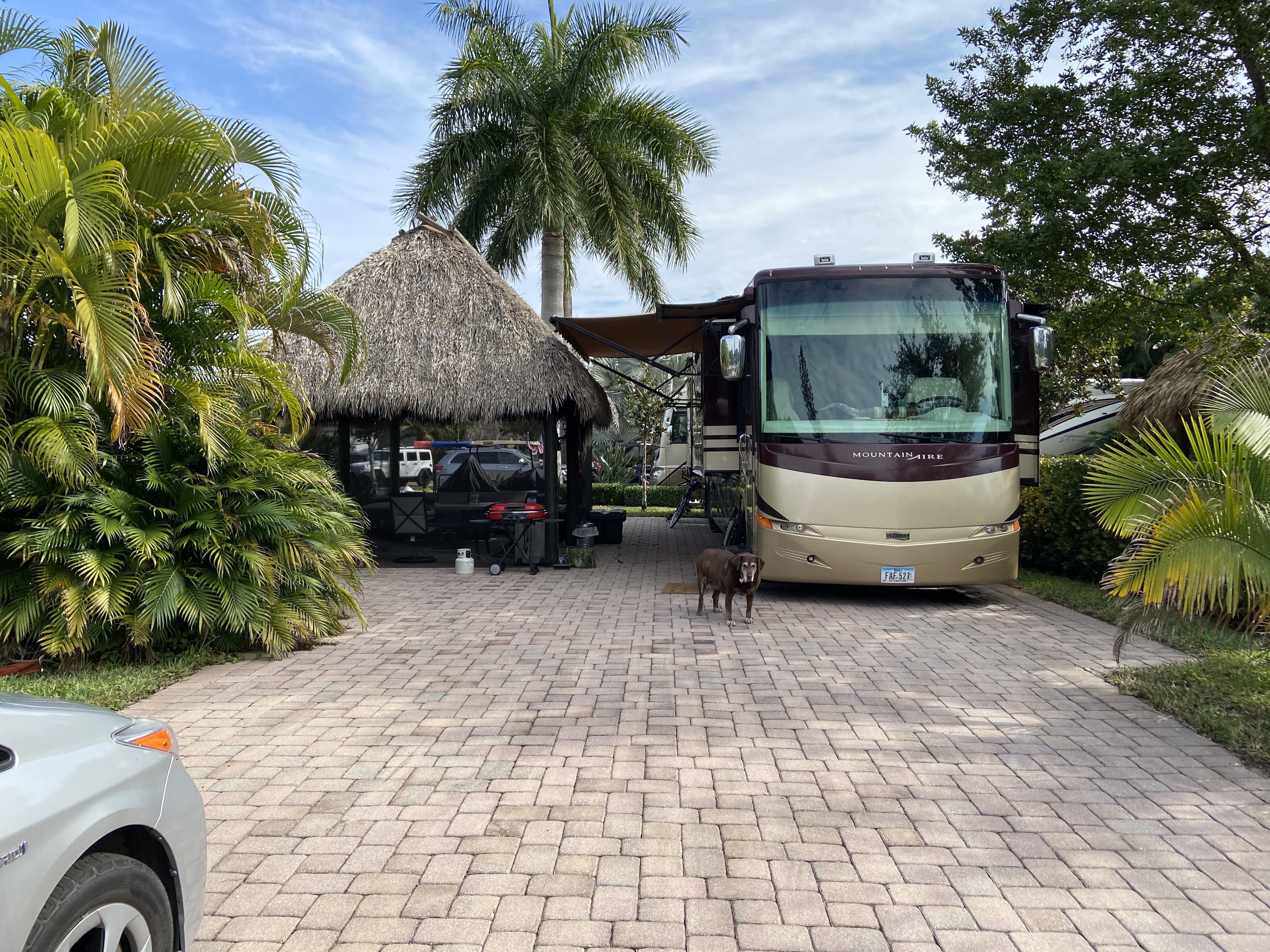Aztec RV Resort is the most luxurious Class A Rv park in Florida, located in Fort Lauderdale area. This site has Tiki Hut with outdoor living area (dinning table, grill, sectional and fire pit) Resort amenities include 2 heated pools, 2 spas, state of the art fitness center, shuffleboard, horseshoe pit, putting green, 2 tennis courts, pickleball court, volleyball, pΓ©tanque court, laundry room. Wi-Fi and 50 amp electric included in rental fee. Class A pad is 23β wide and 85β long.