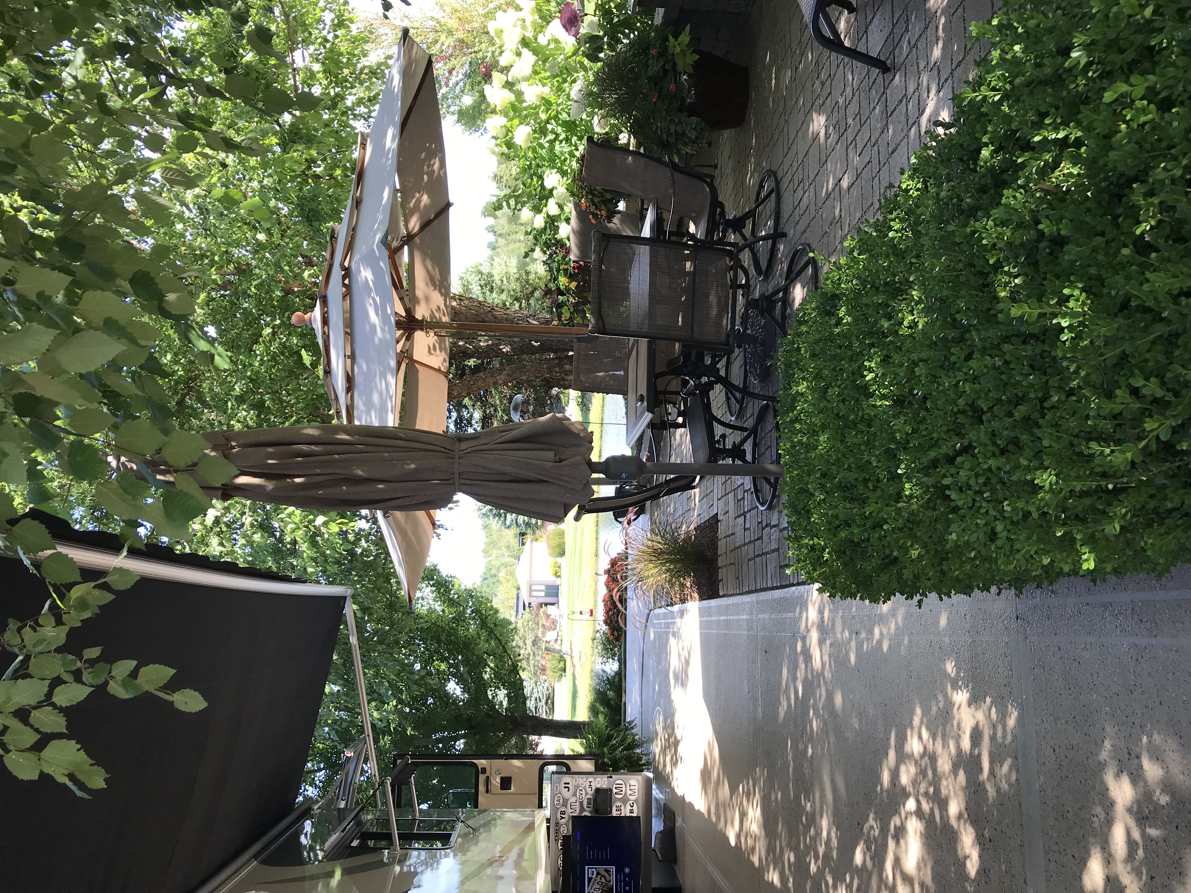 Luxurious and spacious Class A Motorcoach Lot 195 for sale in beautiful Traverse Bay RV Resort in Northwest Michigan. The pull-in lot faces East on a resort pond with fountains that are lit up in the evening. Mature trees and landscaping give shade almost anywhere on the lot at any time of day. Full underground irrigation system assists with keeping the lot watered and luscious for summer months.