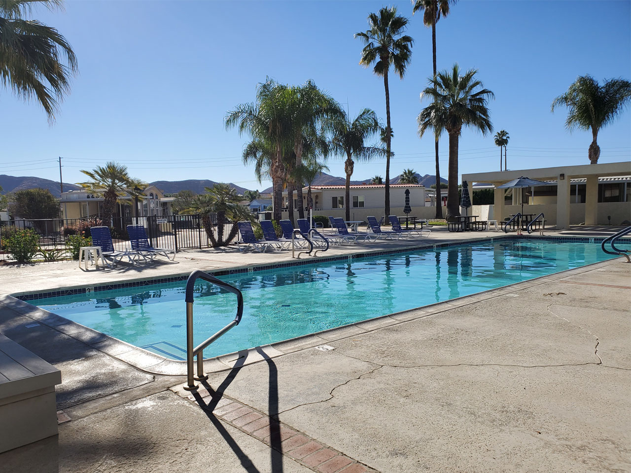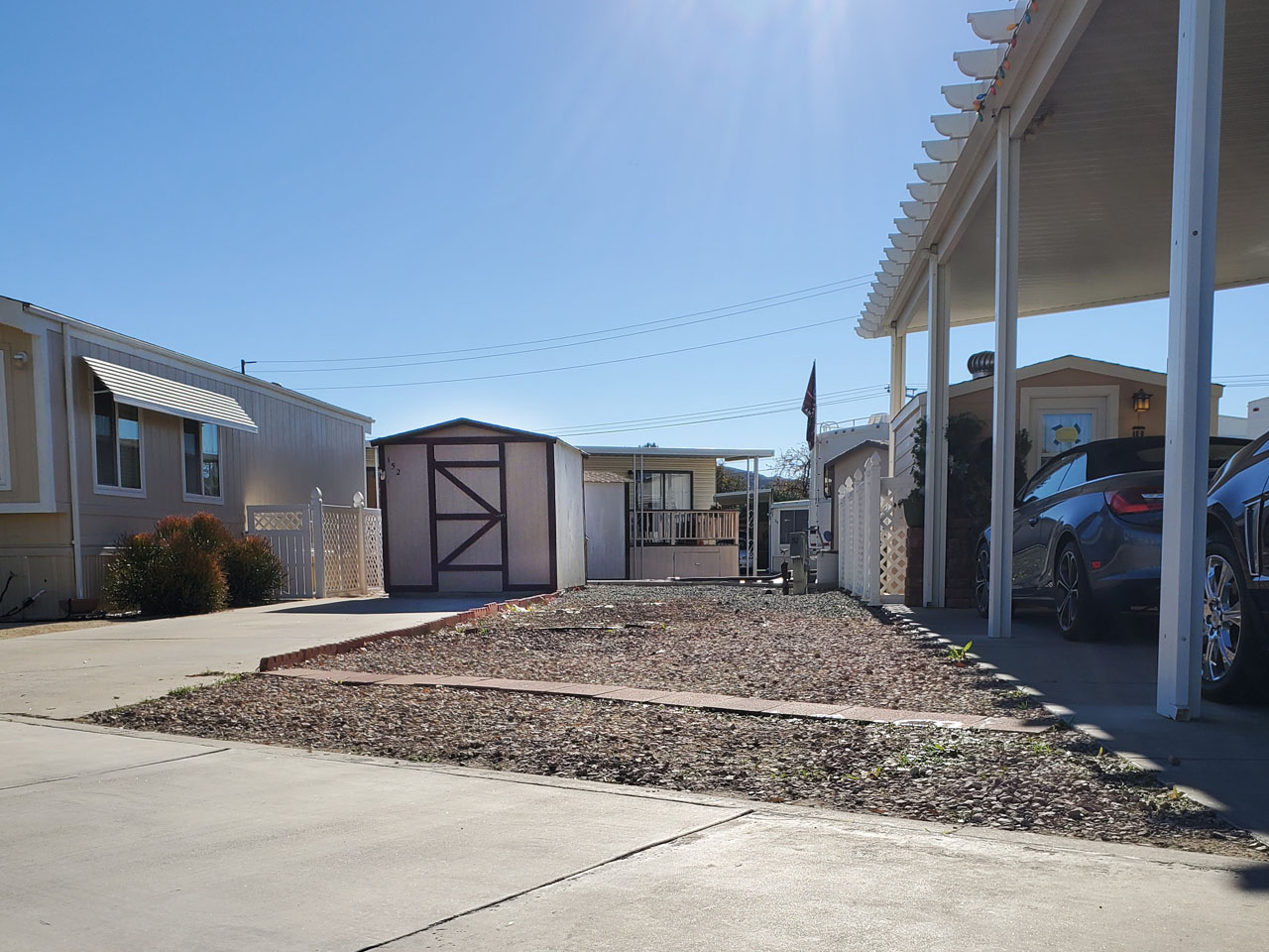 Own the land in this beautiful Mountain Shadows RV Resort 55+ Community. Lot includes a storage shed and concrete slab for parking. This gated community has great landscaping and amenities, including two club houses, swimming pool, spas, billiard room, library, gym, laundry facilities, horseshoe pits, BBQ and picnic areas. This lot has electricity, cable, water and sewer hookup. HOA is approximately $210/month and it covers water, sewer and trash. In the San Jacinto Valley close to the mountain resort of Idyllwild and easy access to Riverside and the Inland Empire. Perfect for snow bunnies, bring your RV and enjoy this resort-style living in Hemet.