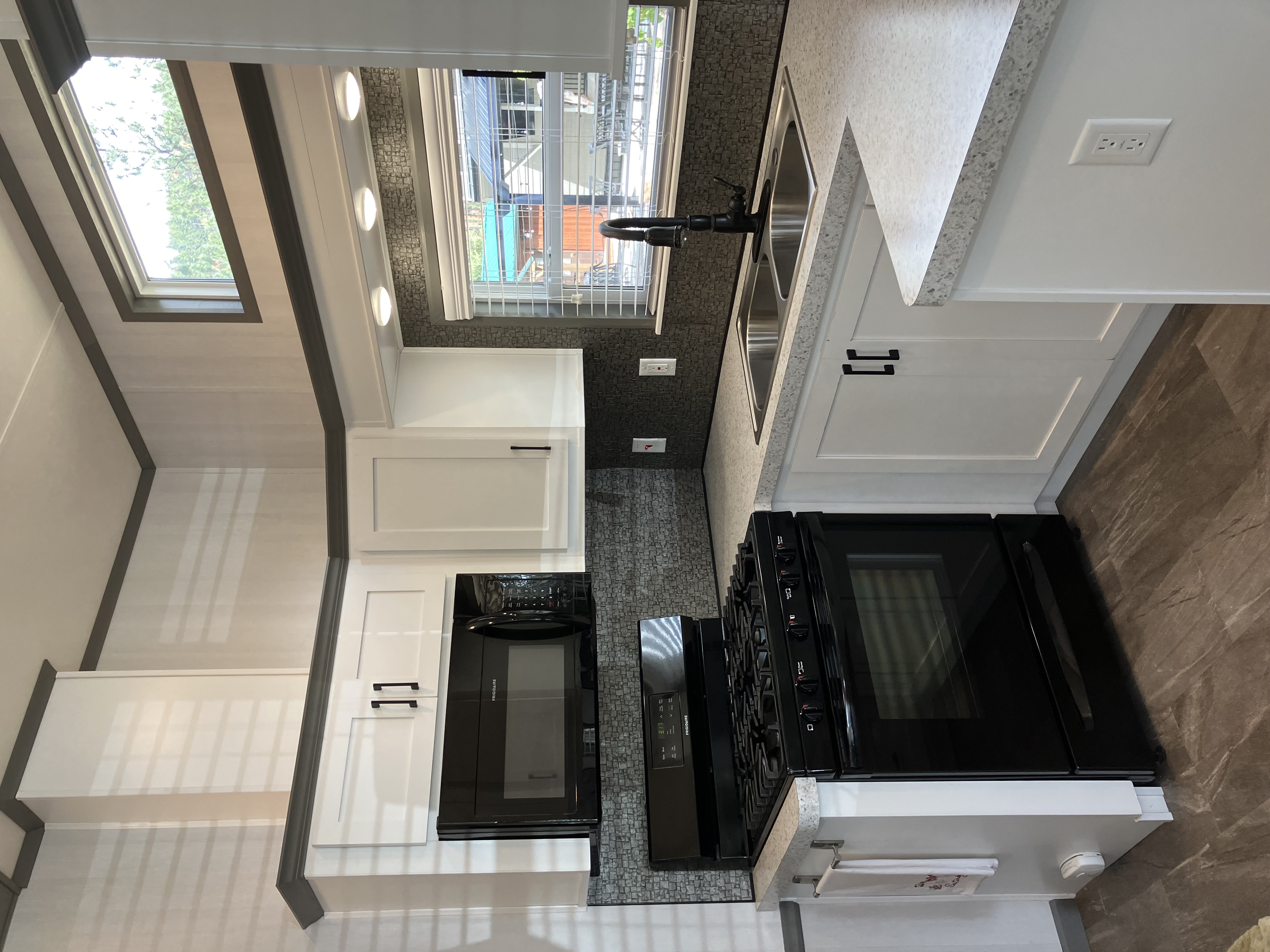 Timber Ridge Denali 2021 Park Model Home 396 sq ft on .29 acres in Shyrock Motor Coach RV Resort, Phase 1, Lot 29 on 6 inch concrete slab with water, sewer, and electric. Clear deed/title to home and land. Upgraded metal roof and hardwood siding. Central heating and cooling. Fully skirted with insulation. Washer and dryer in unit. Exterior 30x8ft deck made of Timbertech Composite for easy care and durability with front and rear steps and metal handrails. Full size refrigerator and gas range. Lot has a concrete patio area and nice stands of trees (ponderosa pine and douglas fir).