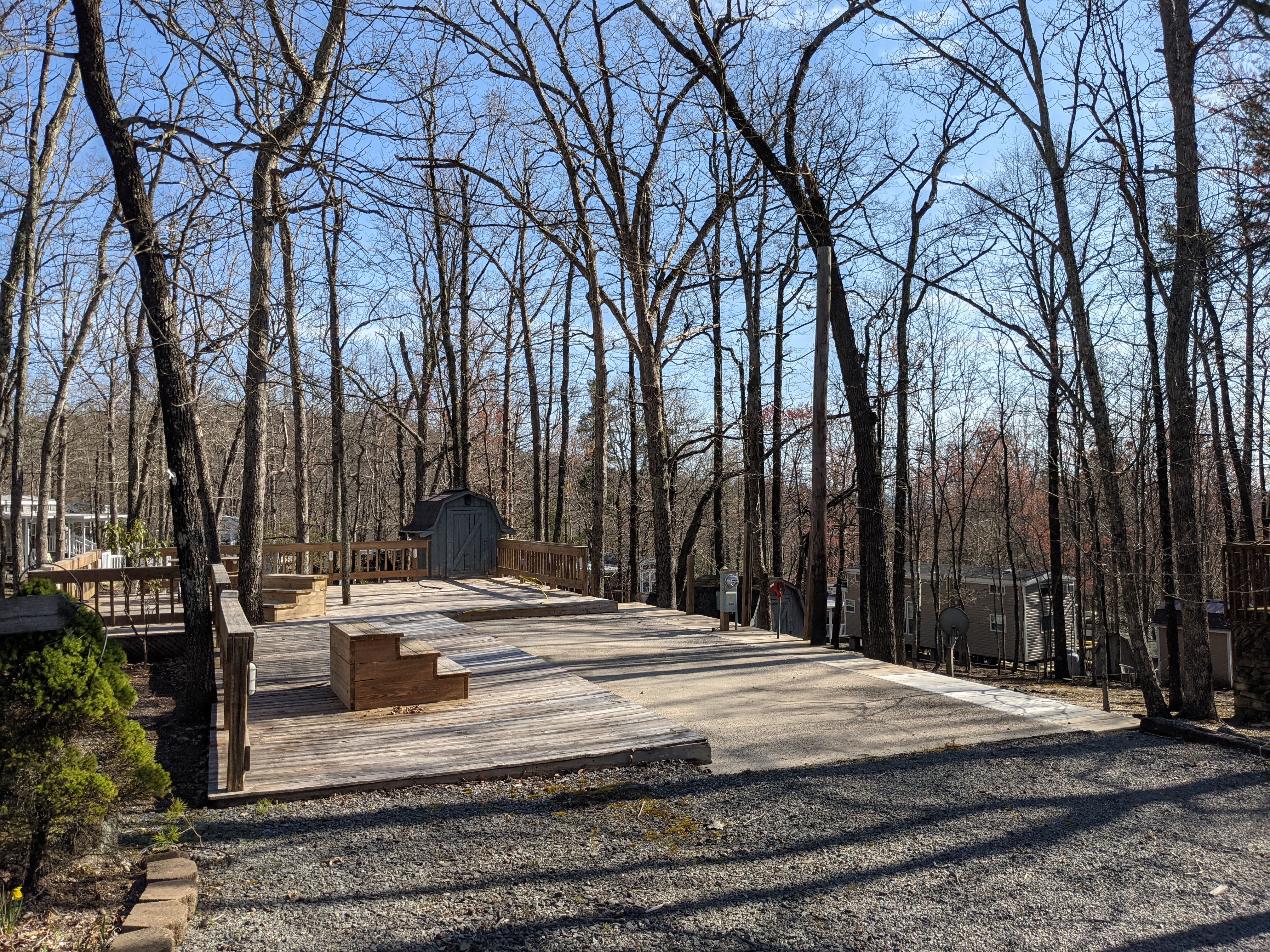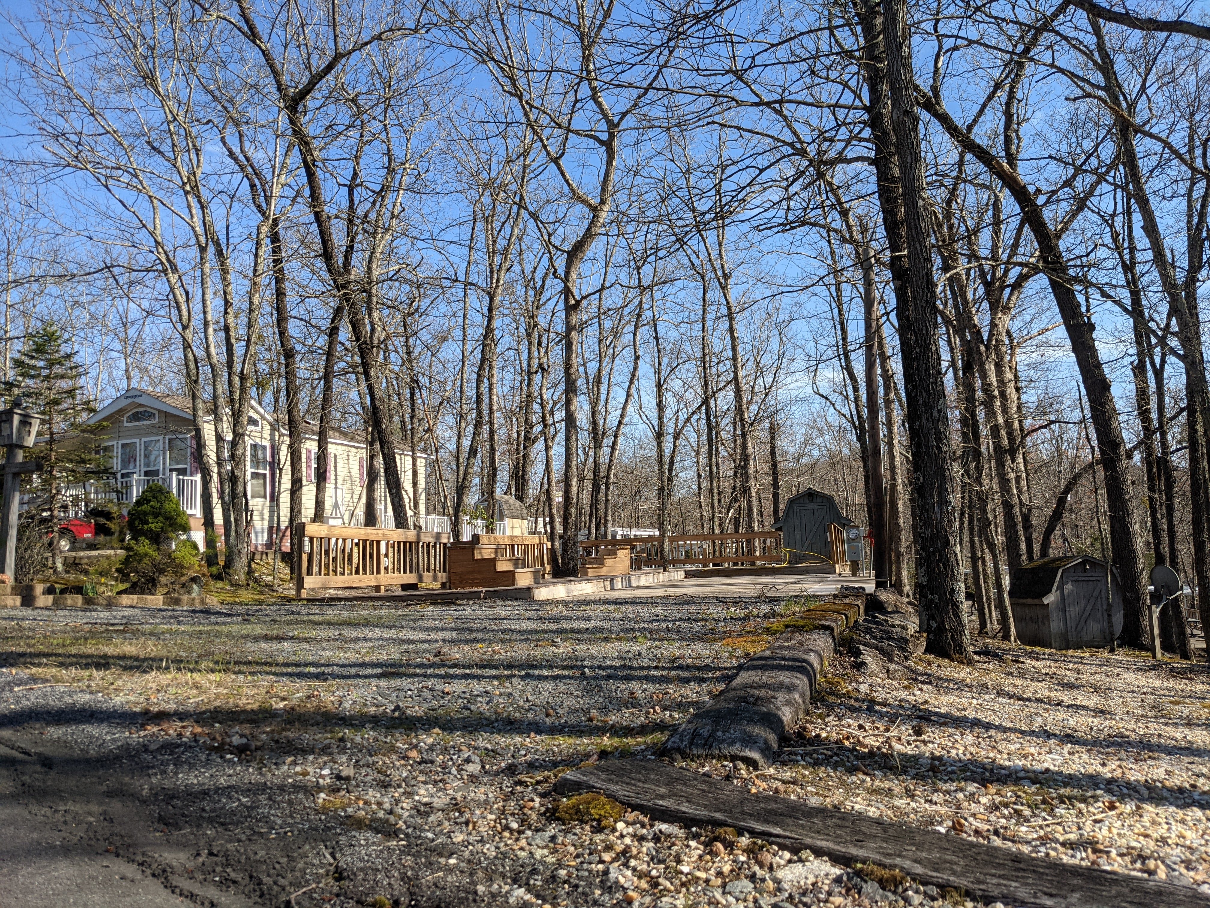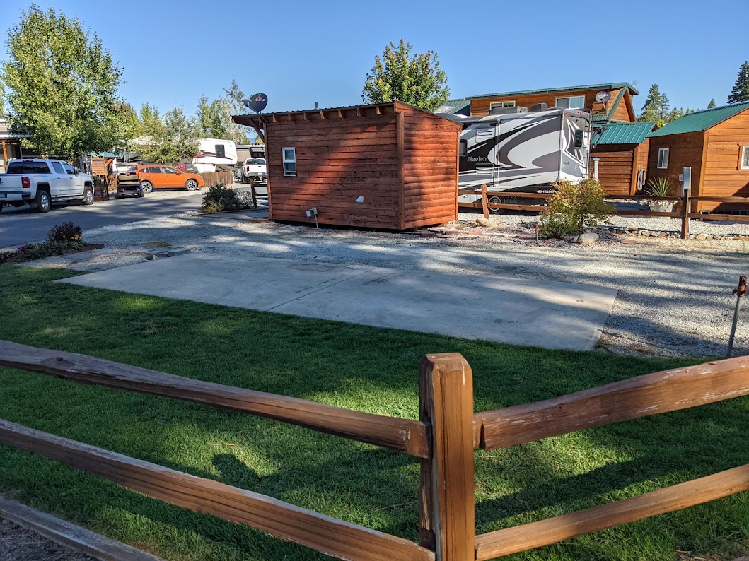 End lot with manicured lawn, flower garden, split rail fencing and concrete patio perfect for a gazebo, grill or pizza oven. With "peek a boo" river view this pull thru lot includes a semi-finished shed w/ Washer and Dryer combo (could also add bathroom), low maintenance gravel parking areas and great neighbors. Perfect property you can very easily personalize and make it perfect for your family. Fulltime community offers a plethora of amenities, including a full year indoor pool, gym, lake/boat access, daily deer sightings, incredible views. Also community activities like pot lucks, Texas holdem, craft night, Bingo, cocktail hour, Cornhole, block parties and so much more.