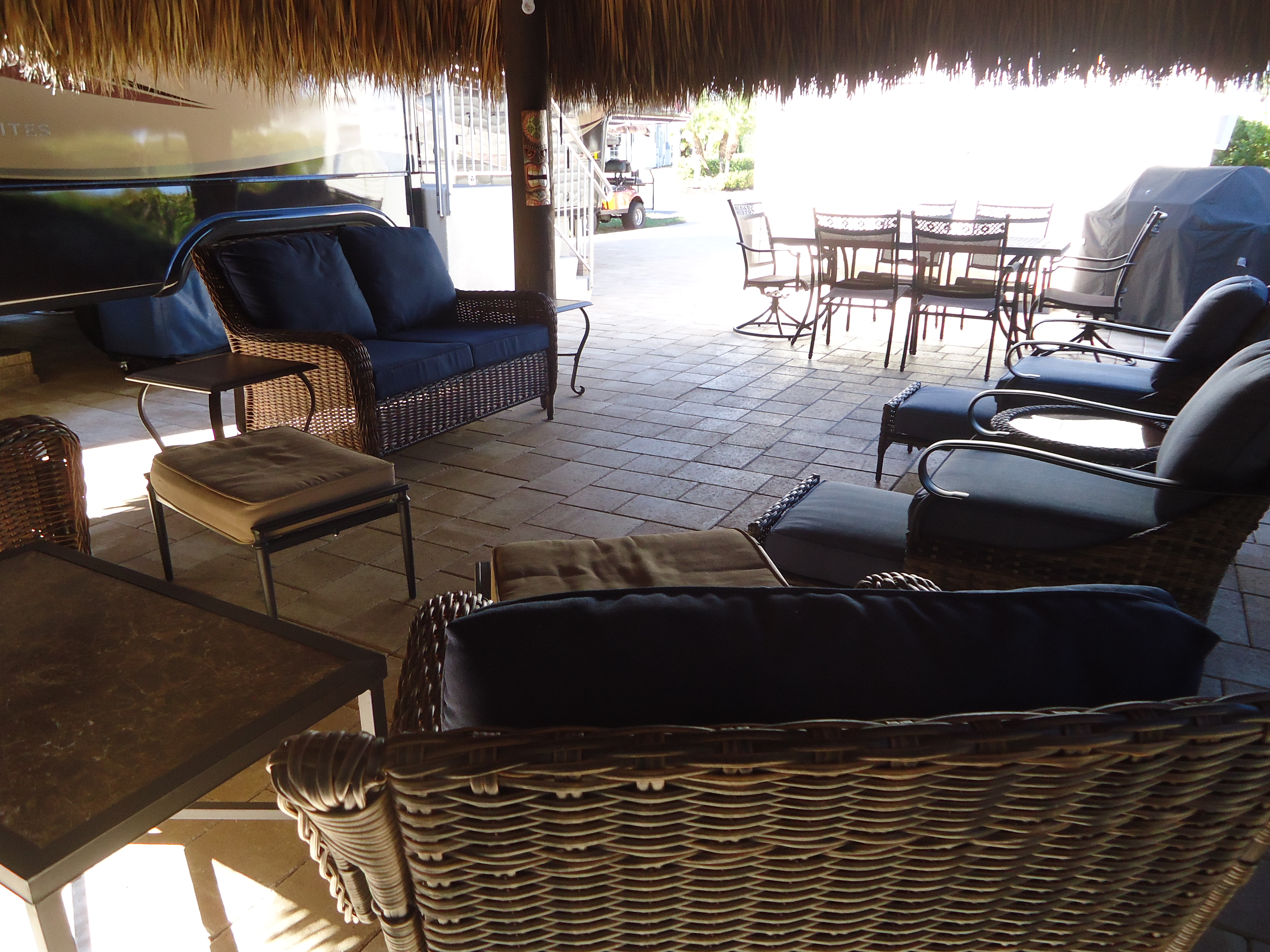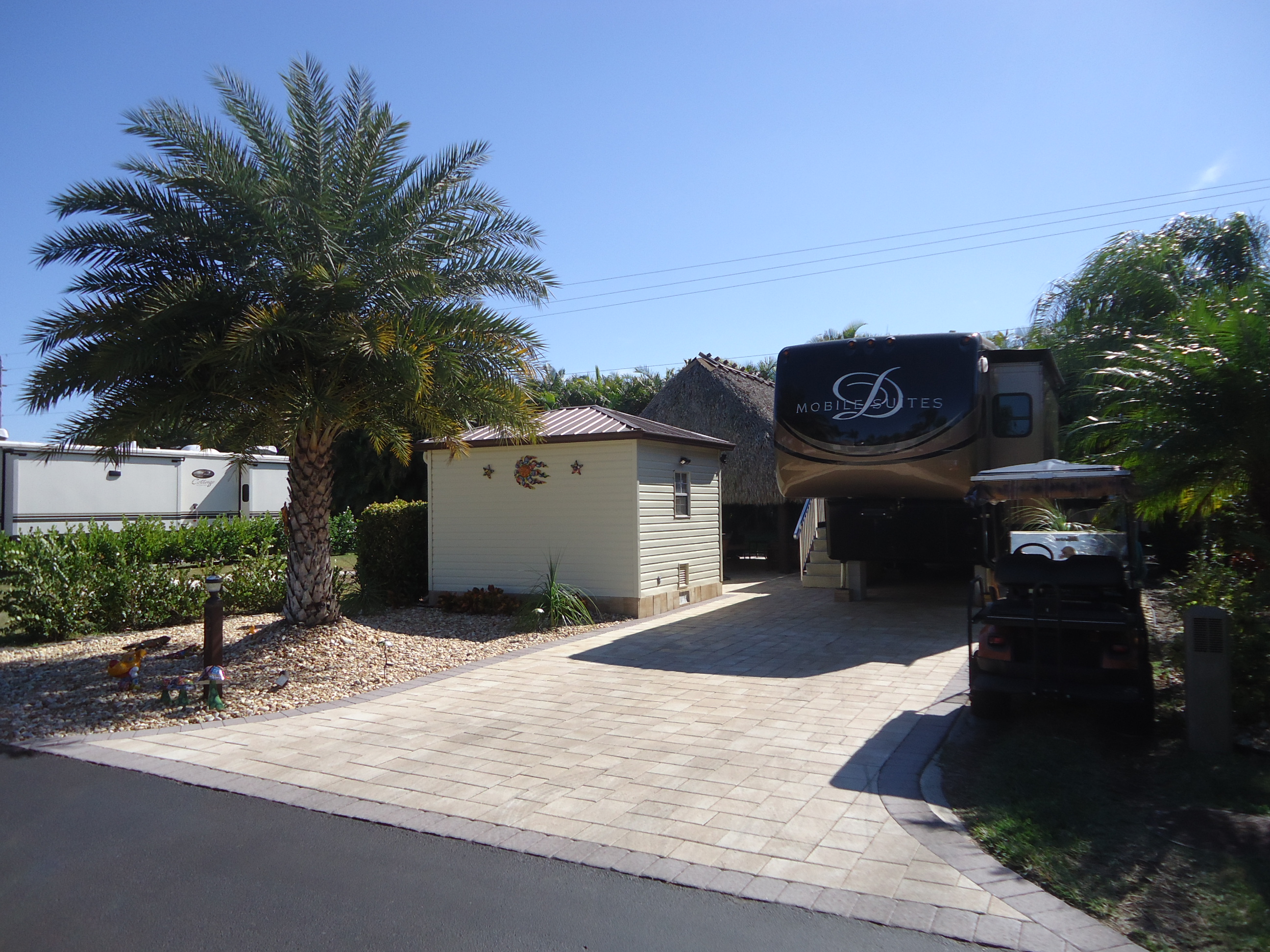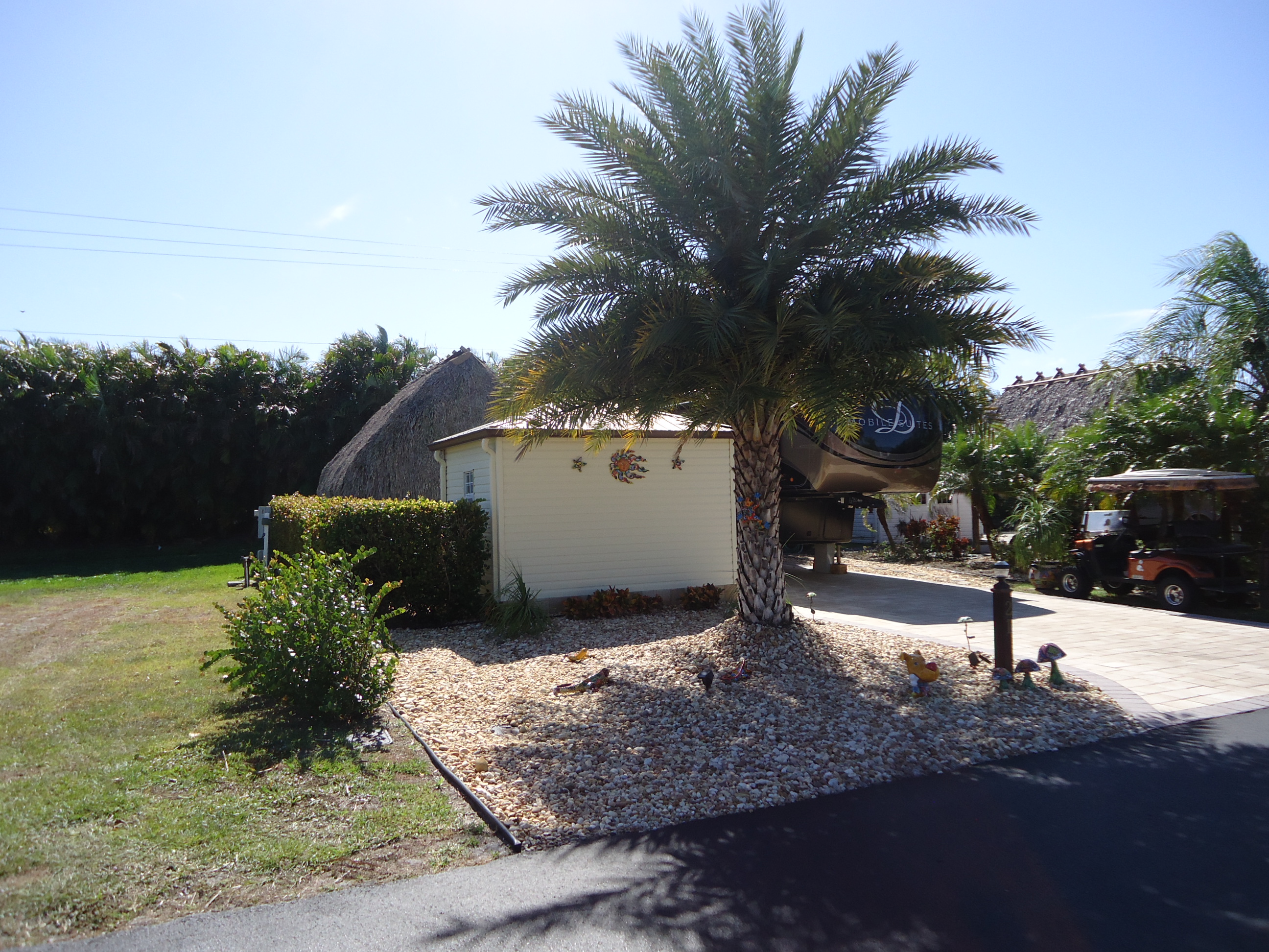 Beautiful 40 X 70 RV lot in luxurious 5 Star Silver Palms RV Resort in Okeechobee Florida. Equipped with 13 X 16 tiki hut, 10 X 12 shed, and privacy hedge. NO neighbors in the rear, close to bath house and laundry.