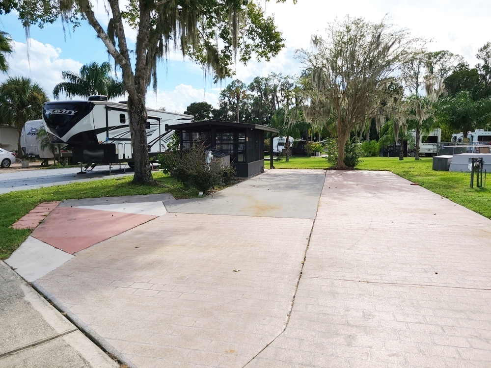 Deeded RV Lot #64/65 - FOR SALE in Lazy Days Camp Resort Lot Owners Association, Inc., Welaka, Florida. 69β Wide x 65β Long. Room for 45β RV, Three vehicles, and two golf carts. The lot includes a 10' x 12' four-season screen room with a lanai that host a southern, slightly elevated view of the park's marina basin and the St. Johns River. RV paved parking pad is 63' L x 21' W. The three additional parking spaces measure (2) 26' L x 10' W and (1) 20' L x 10' W. Lot has 50-amp service (FPL), water & sewer (Town of Welaka). Wi-fi at Clubhouse & Screen Room Area. AT&T Services, including internet, Dish, and Direct TV Satellite, are available upon installation. HOA annual dues are currently $945.00 per lot. $1,890 a year for this property. Turn immediately northwest from the lot, there is the pool, located behind the clubhouse/screened room with coin laundry room facilities and a restroom/bathhouse. Two catch and release ponds. The dock with a viewing deck has a fabulous, covered fish cleaning station. Marina Basin Boat slips are assigned, not deeded, and a designated storage area for boats & trailers. $174,500. Owner Financing available. Terms Negotiable. Welaka is a hidden gem thatβs part of Old Florida Living, and Lazy Days is a Paradise Retreat. Convenient to all that you need, being 45 mins to St. Augustine, 1 hour to Daytona Beach, and 13 miles to Winn Dixie in Crescent City.