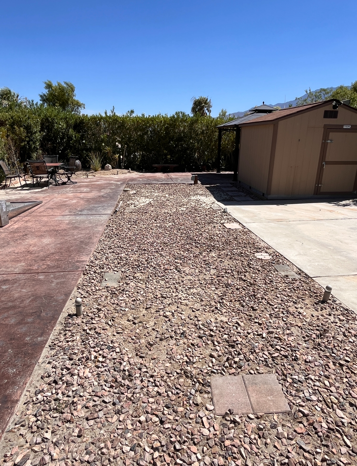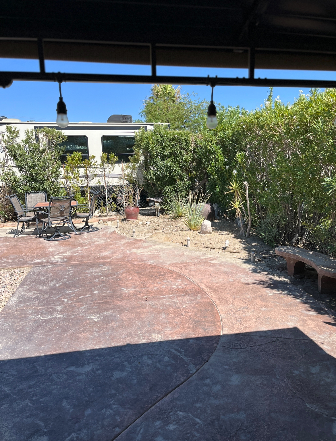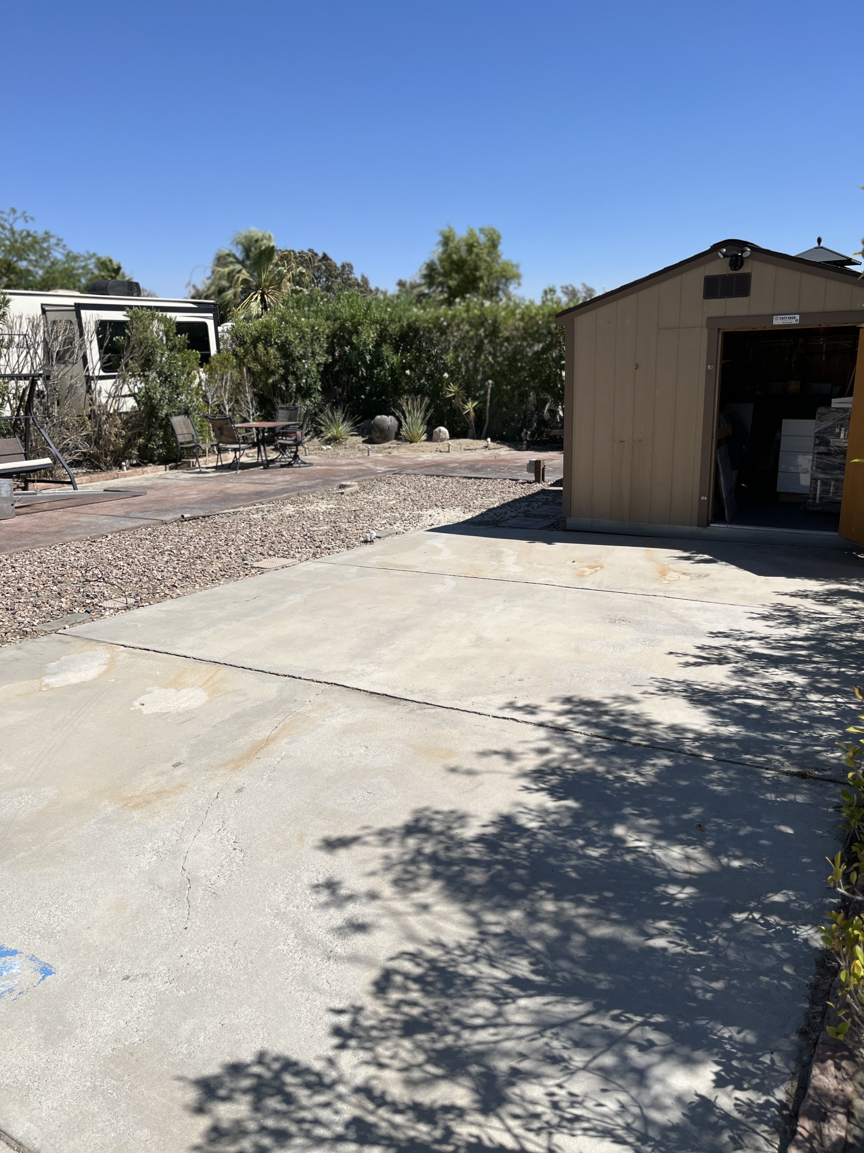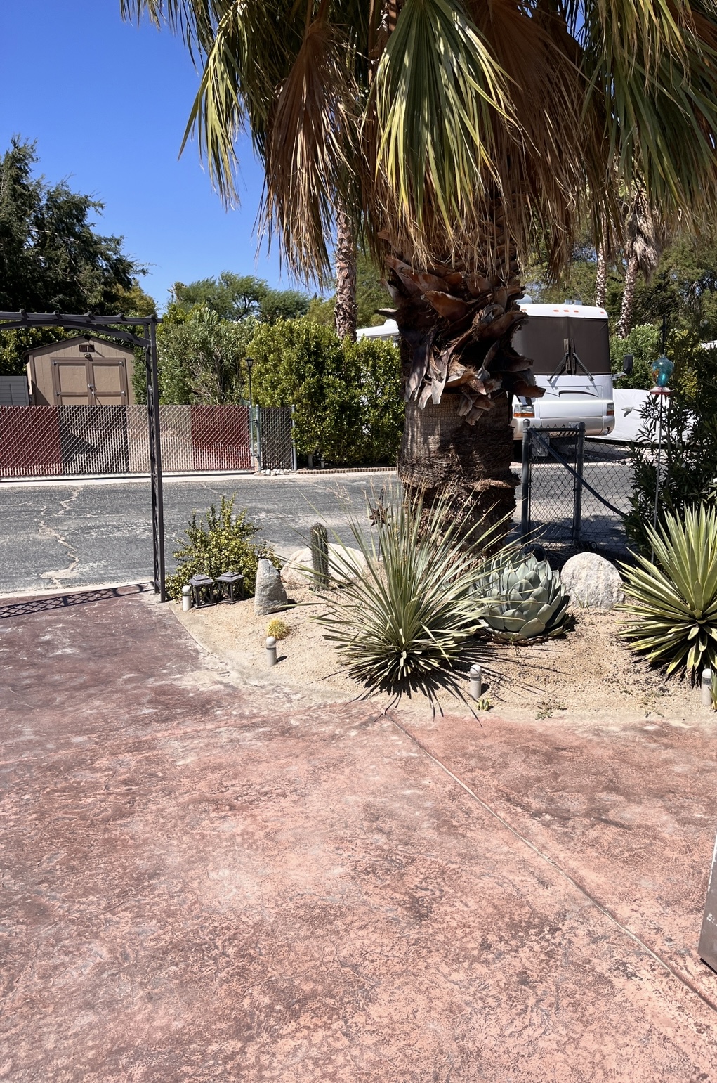 Lot #52 Approx 50X50. Located in Two Springs RV Resort in North Palm Springs, California. 50/30 Amp hookup and Sewer, water included. This lot comes with a 10X!0 Tuff Shed that fully insulated and has multiple power outlets inside and out. There is a very private covered patio on this site. Lot is fully landscaped with mature plants and trees. Underground electrical landscape lighting with additional power & water outlets. The lot has an attractive stamped concrete patio paving. There are 2 vehicle spaces in front of Shed. Cable is installed. This is a 50+ community with lots of amenities, including large pool and spa, pickleball, tennis, bocce, horseshoes mini-golf etc. There is a clubhouse w/organized activities (movie and game nights, ping pong, darts, classes, dancing, pool aerobics, plus more. This is pet friendly with fenced dog park. Lots of paths for walking and biking. Resort includes laundry, and shower/restroom facilities. Resort is located 10 minutes from downtown Palm Springs. There is an annual fee due in January of each year. Park provides water and garbage disposal. Lot owner is responsible for electric usage. There is a one time title transfer fee paid to 2springs. Super nice people.
