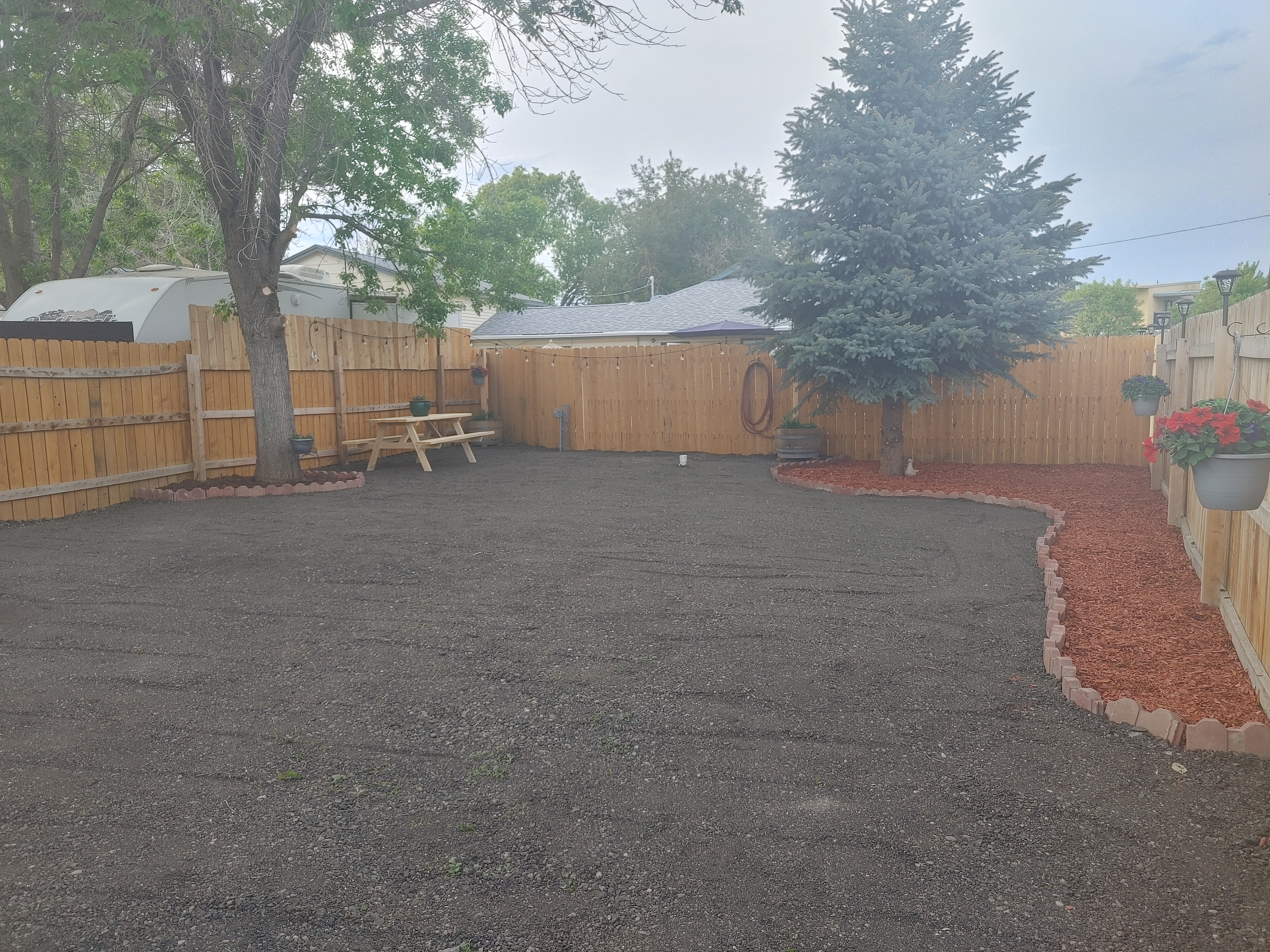 Very large and private 40'x80' RV space for rent including ALL utilities, water, sewer hookup, 30 Amp electric, washer/dryer room, Xfinity WIFI, and private parking spaces. Lots of shade from 2 trees and completely asphalted within your privacy fence. Up to 40' RV will fit perfectly, and thanks for looking!