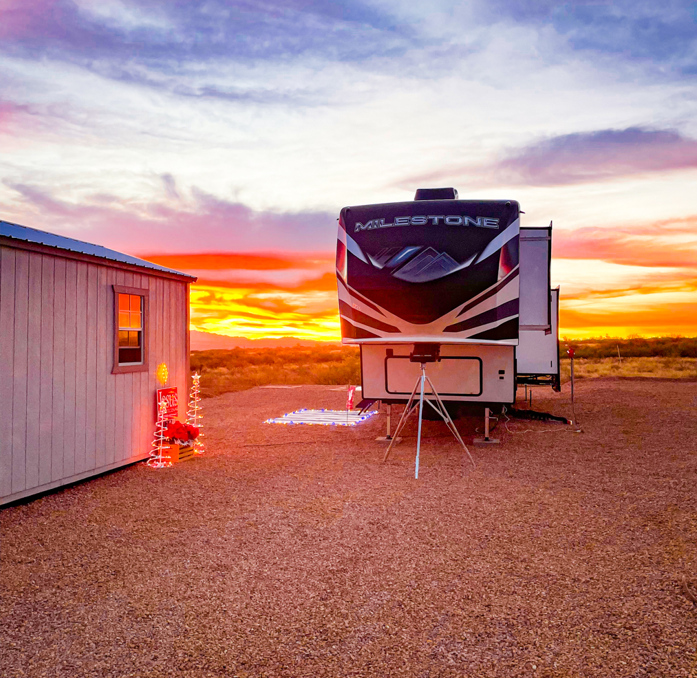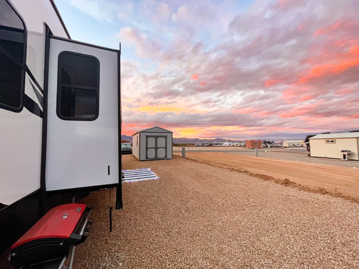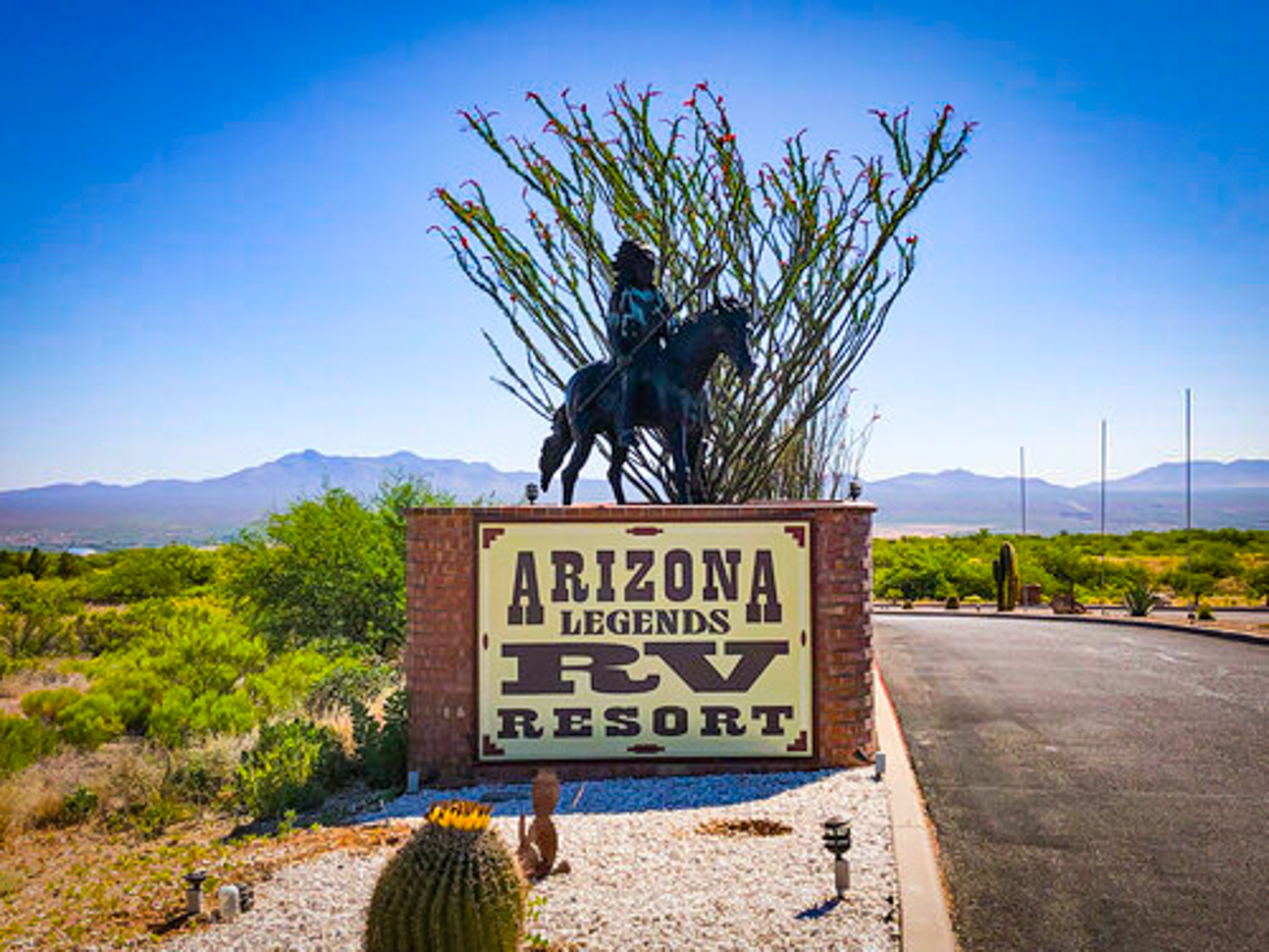 Lot size is approximately 40 x 100 with utilities. Electric, water and 2 sewer lines. Only one available in Arizona Legends RV Resort.