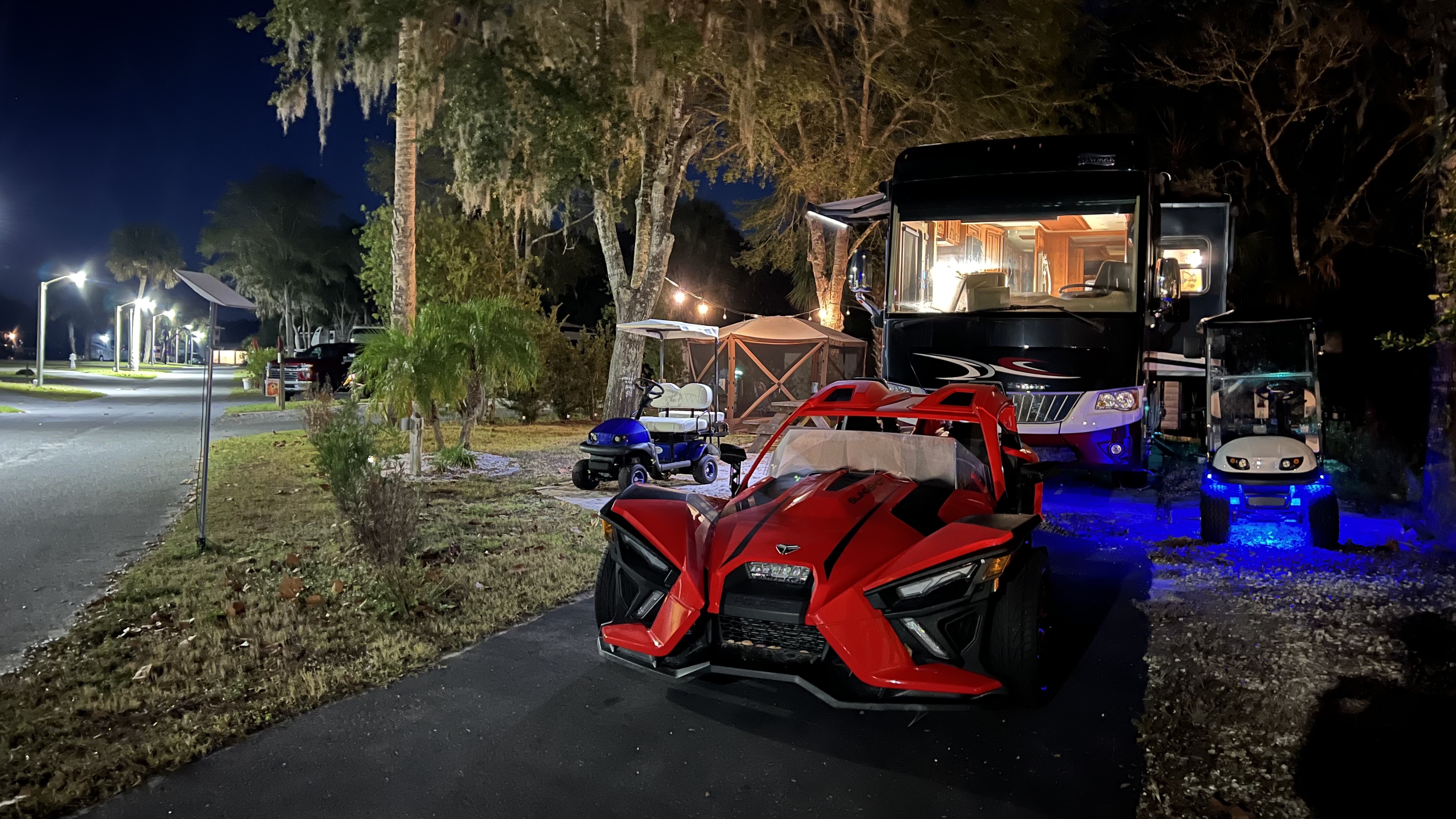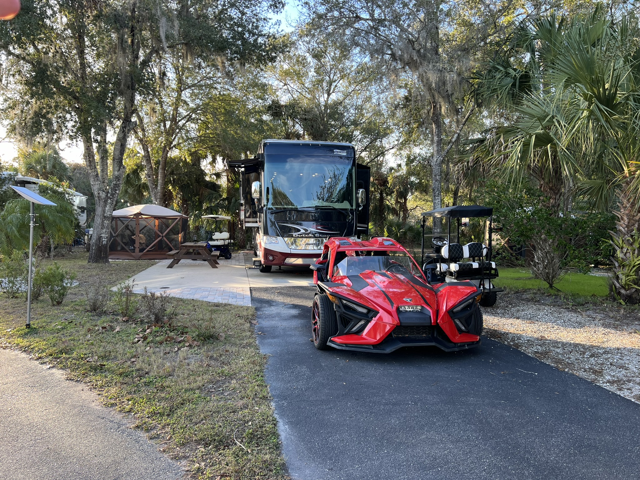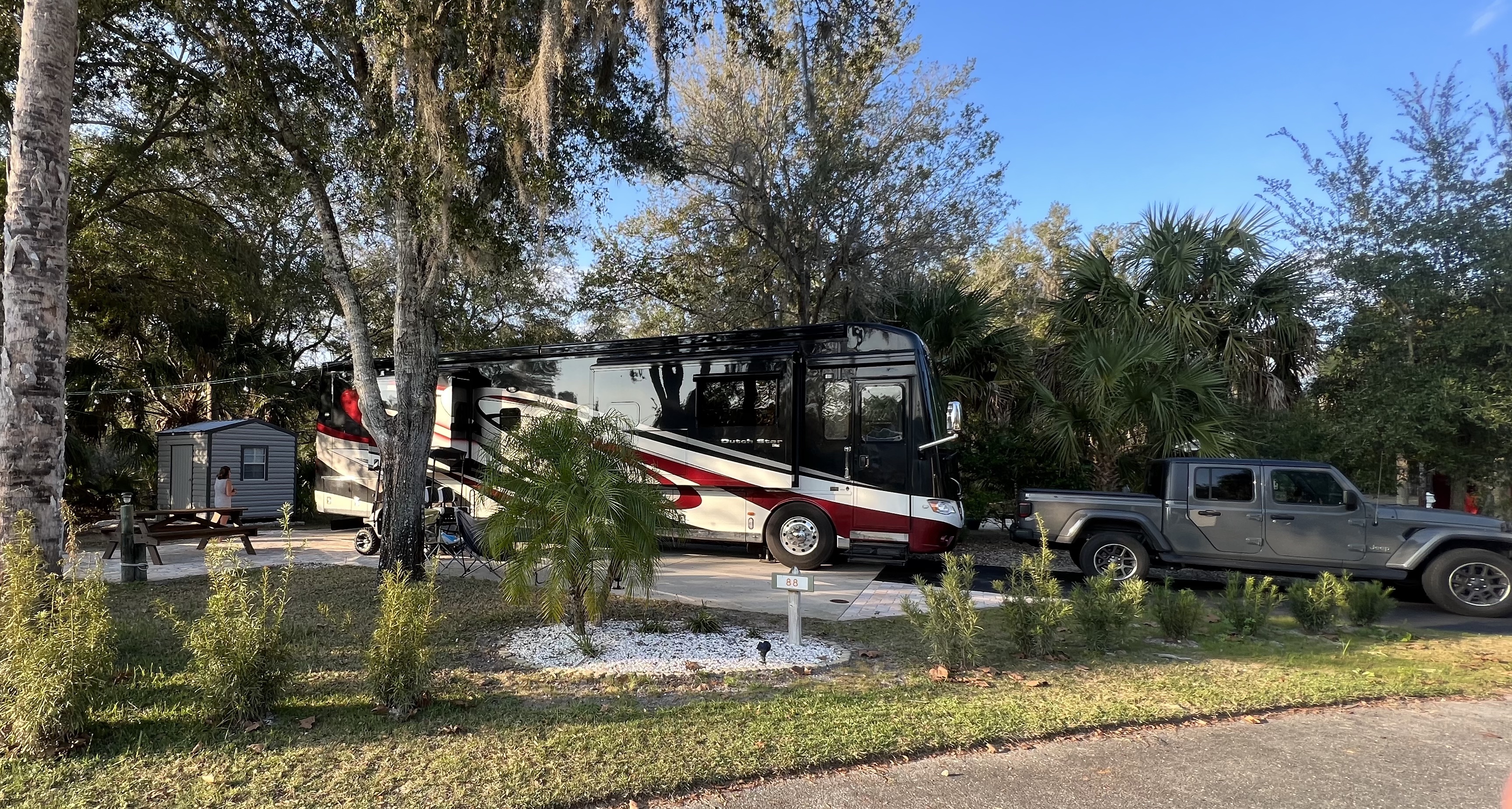 The spot has an automatic watering system and lawn care is provided by the resort. The lot backs up to a large wooded area and it is one of the most covered spots in the park giving you nice shade on a hot Florida day.